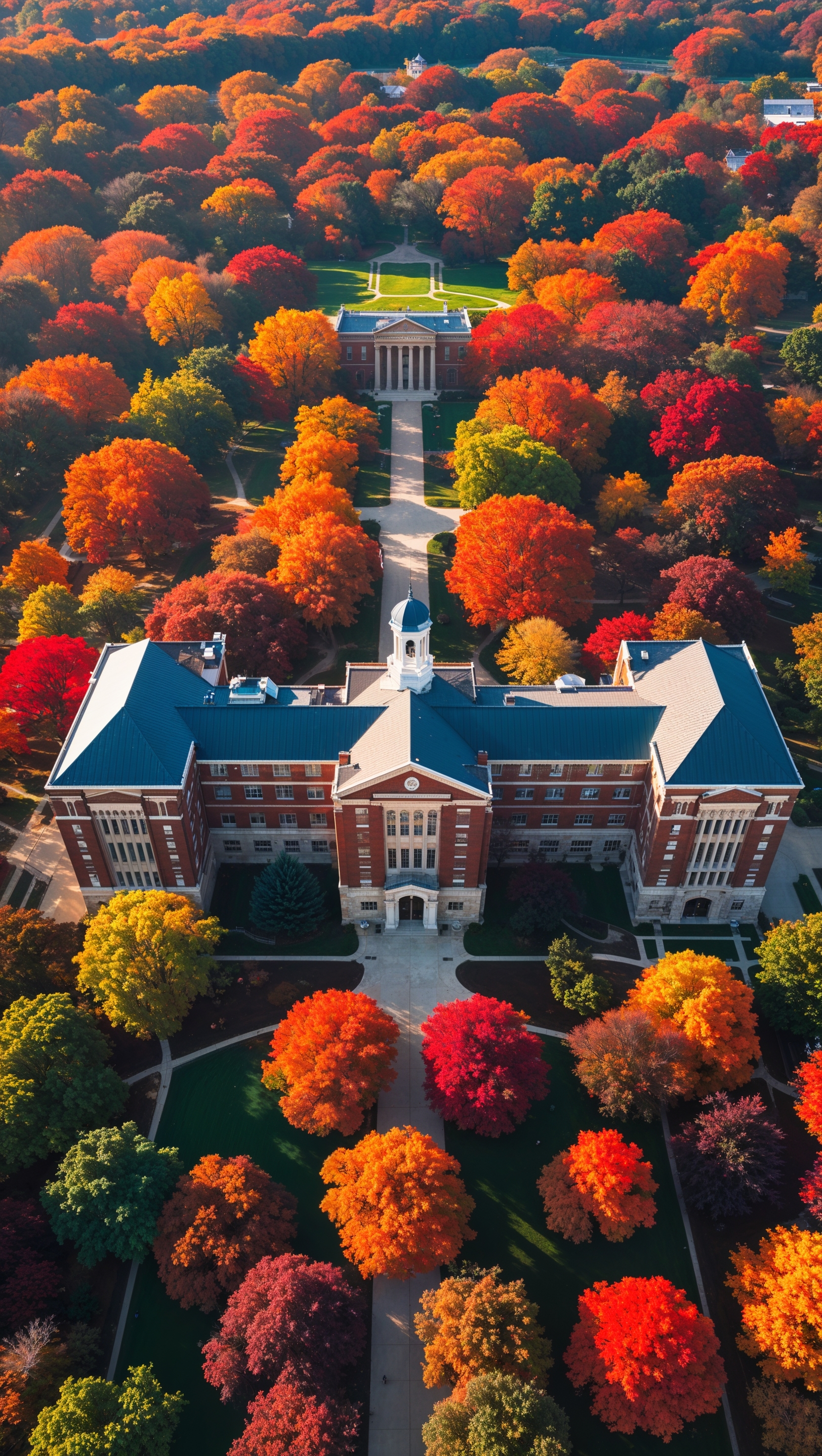 1664x2944 Aerial view of Ohio State University campus during autumn, colorful leaves, iPhone wallpaper