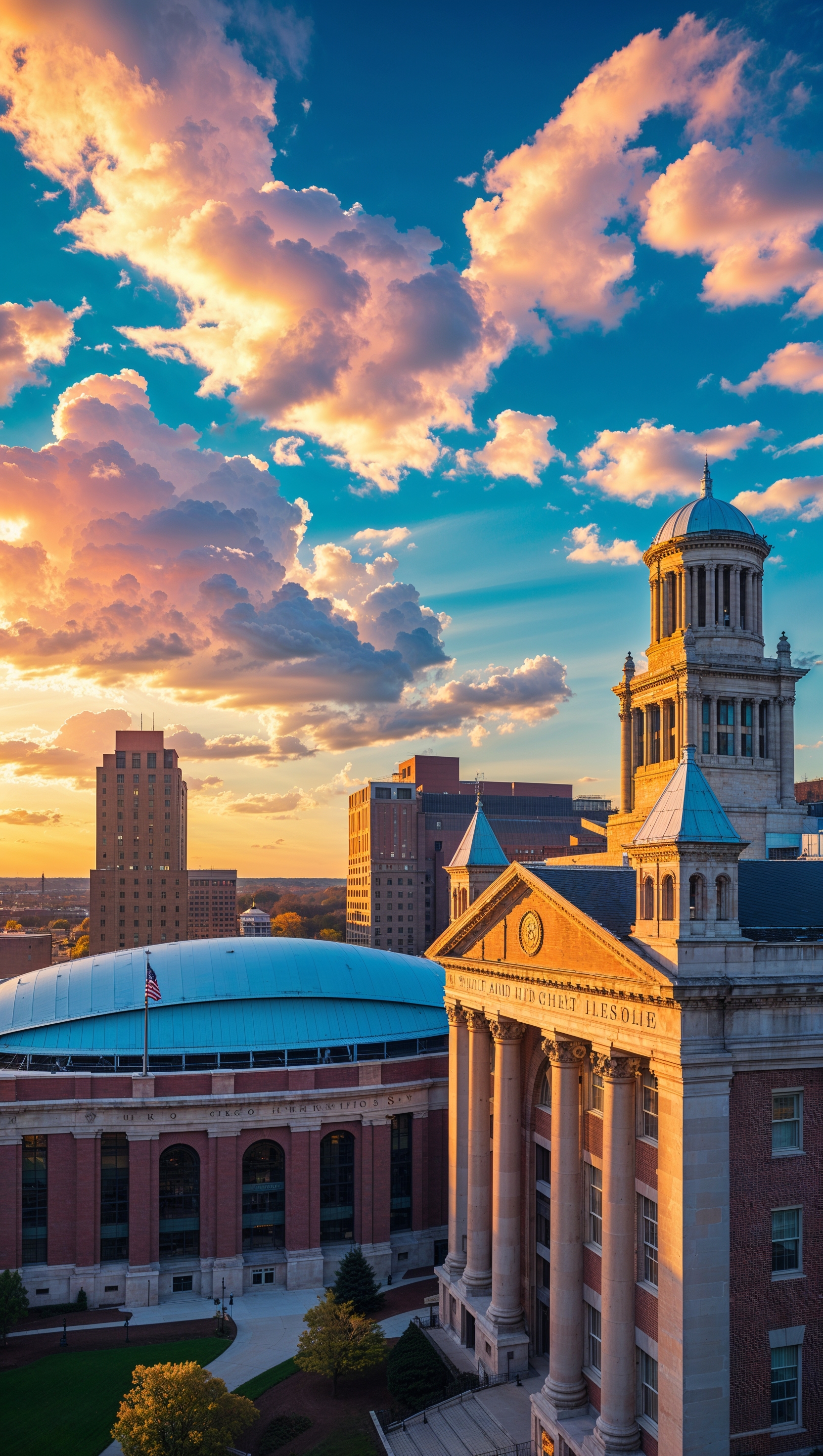 1664x2944 Wide-angle shot of Ohio State buildings with dramatic sky, iPhone wallpaper