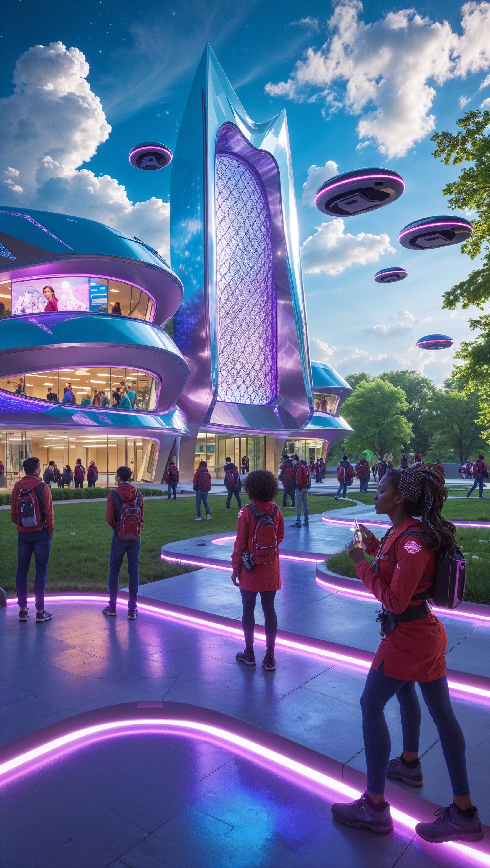 1664x2944 Futuristic Ohio State campus in year 2100, advanced architecture, sci-fi iPhone wallpaper