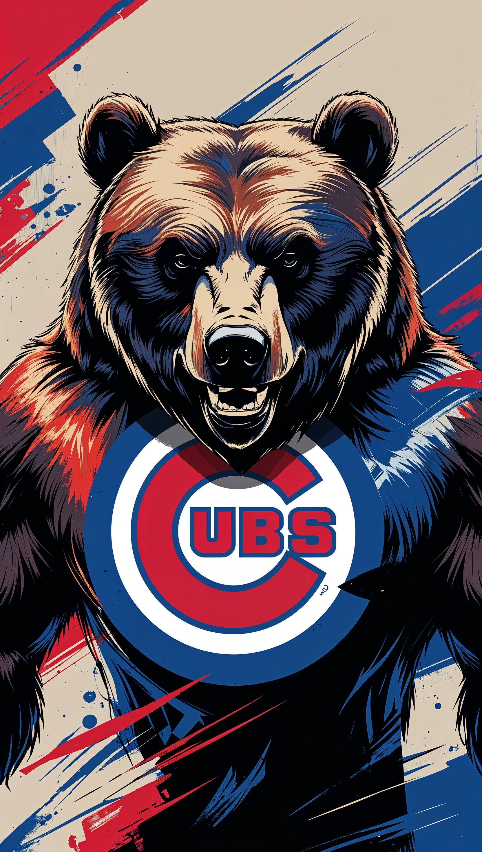 1664x2944 Fusion of Cubs logo and bear in a modern graphic art style