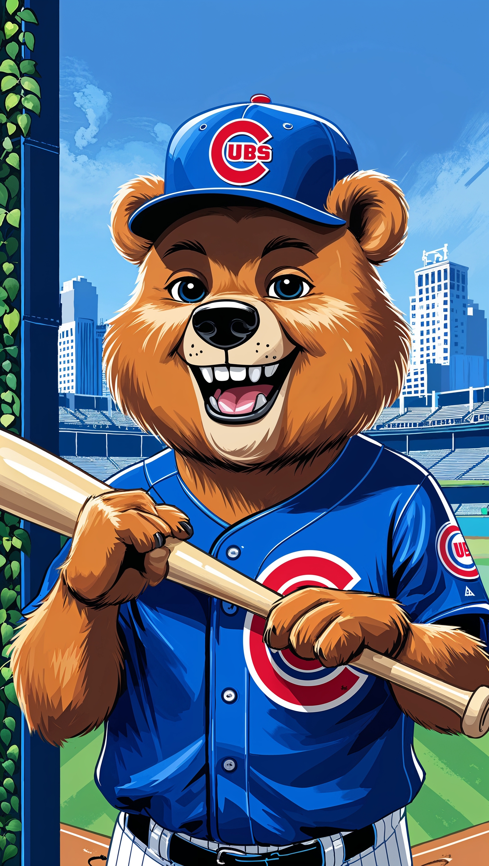 1664x2944 Cartoon-style Chicago Cubs bear in digital painting style for iPhone