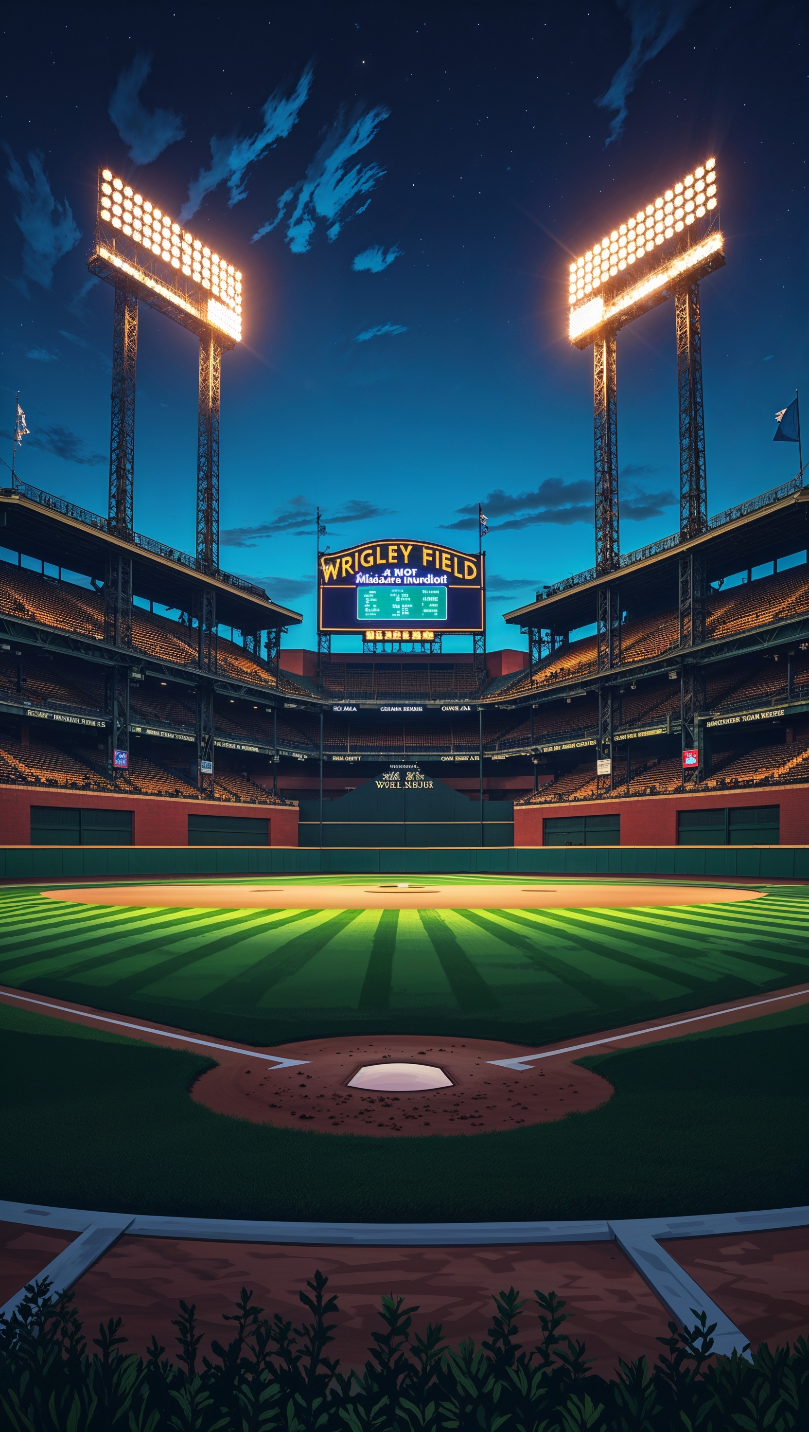 1664x2944 Wrigley Field stadium at night with dramatic lighting for iPhone