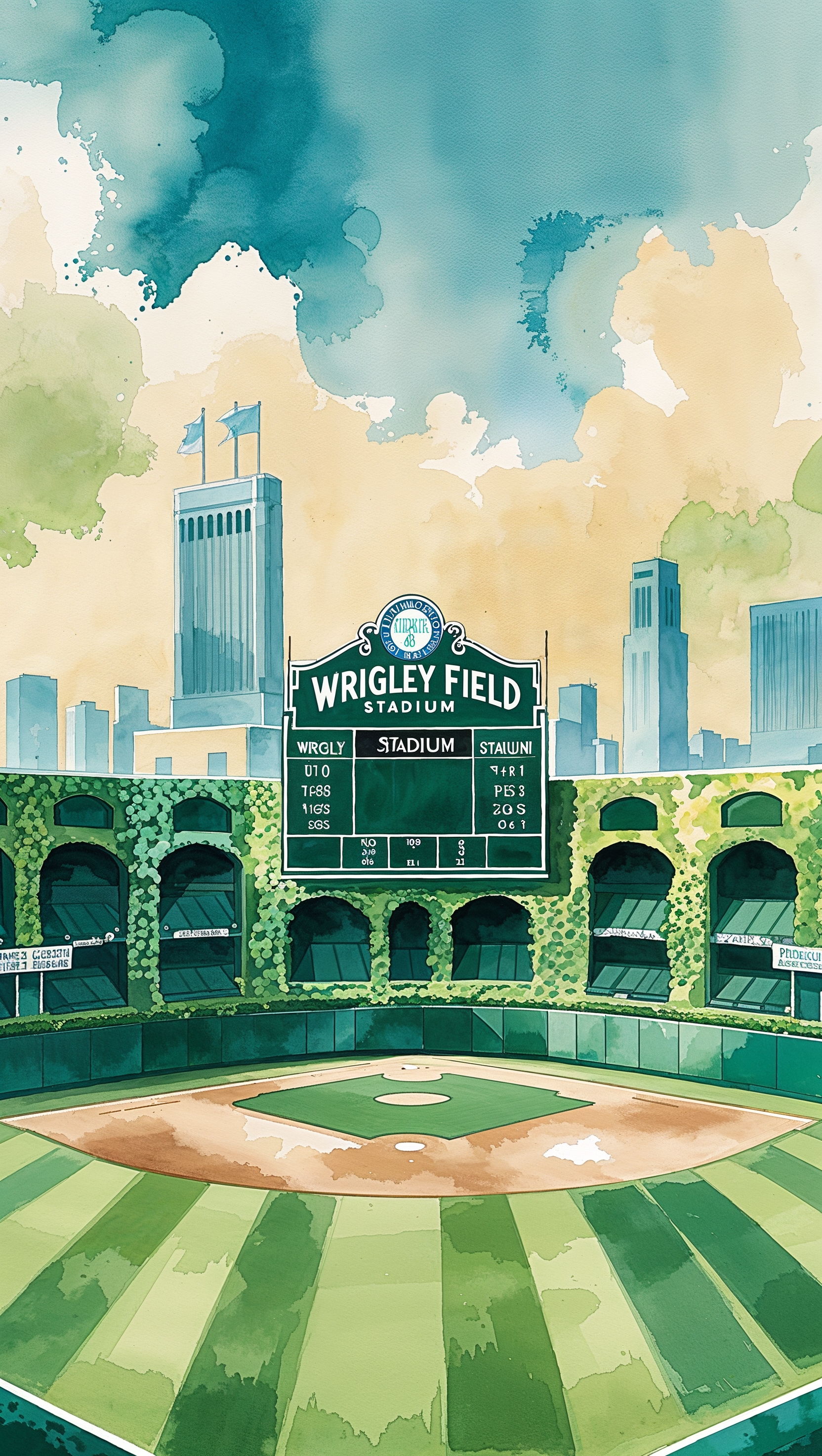 1664x2944 Watercolor-style wallpaper of Wrigley Field stadium
