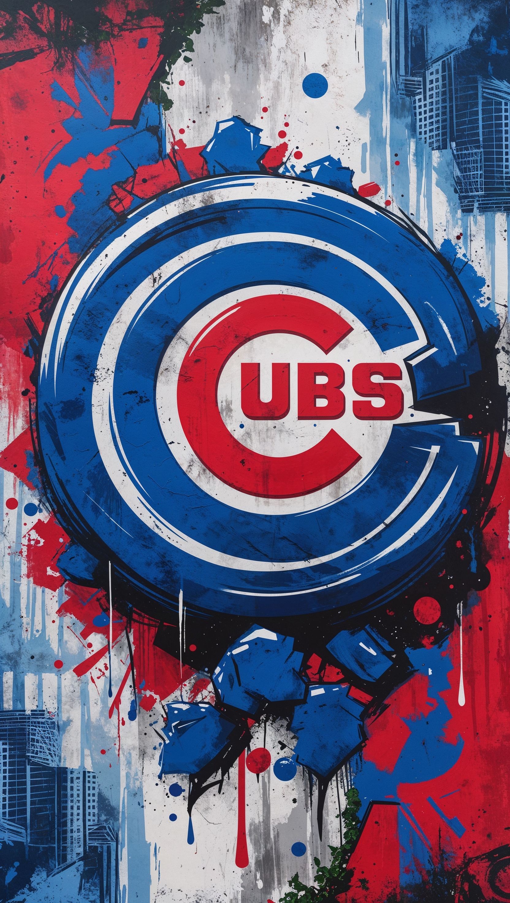 1664x2944 Graffiti-style Chicago Cubs themed wallpaper