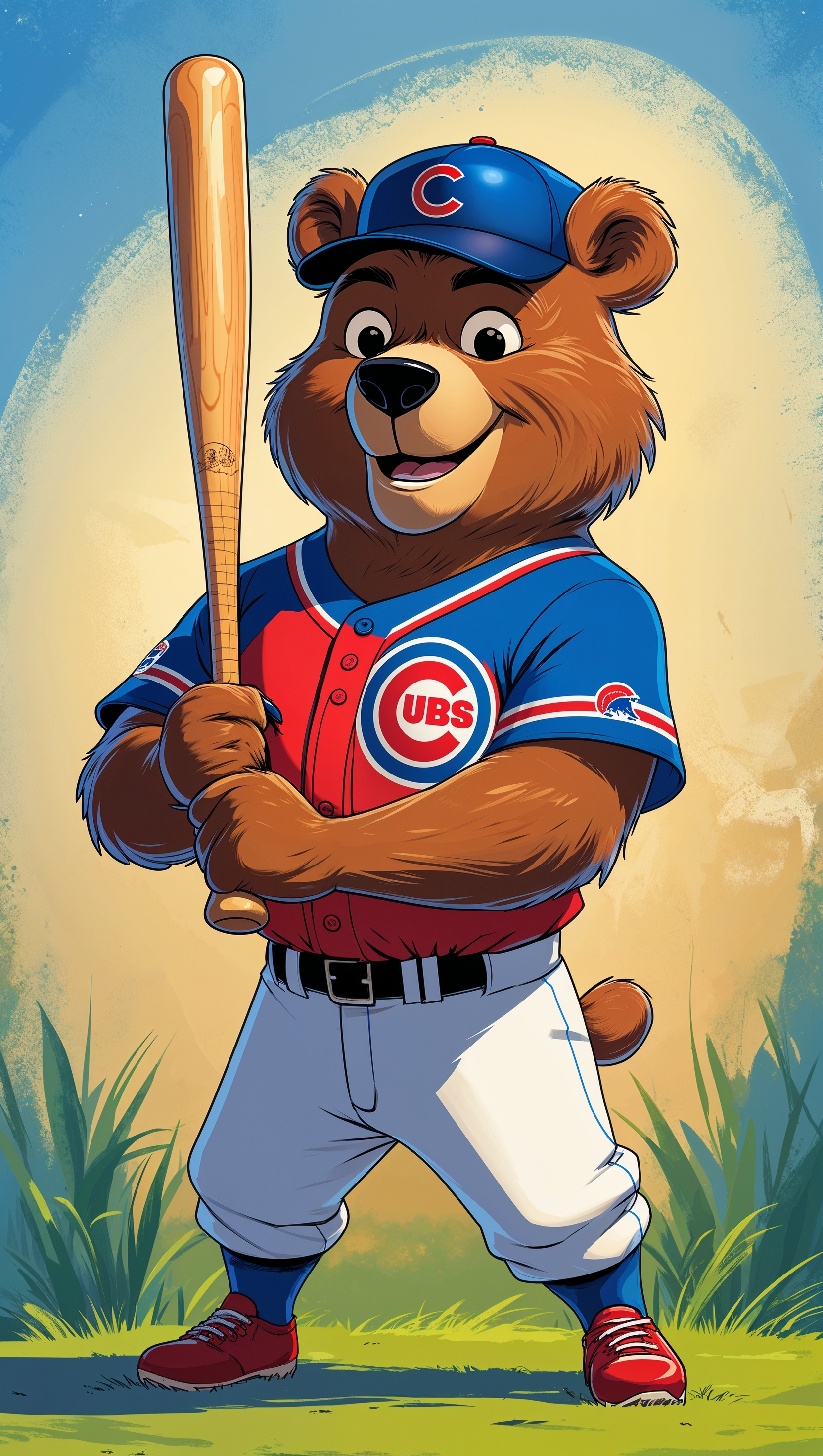 1664x2944 Animated bear with baseball bat in Cubs uniform