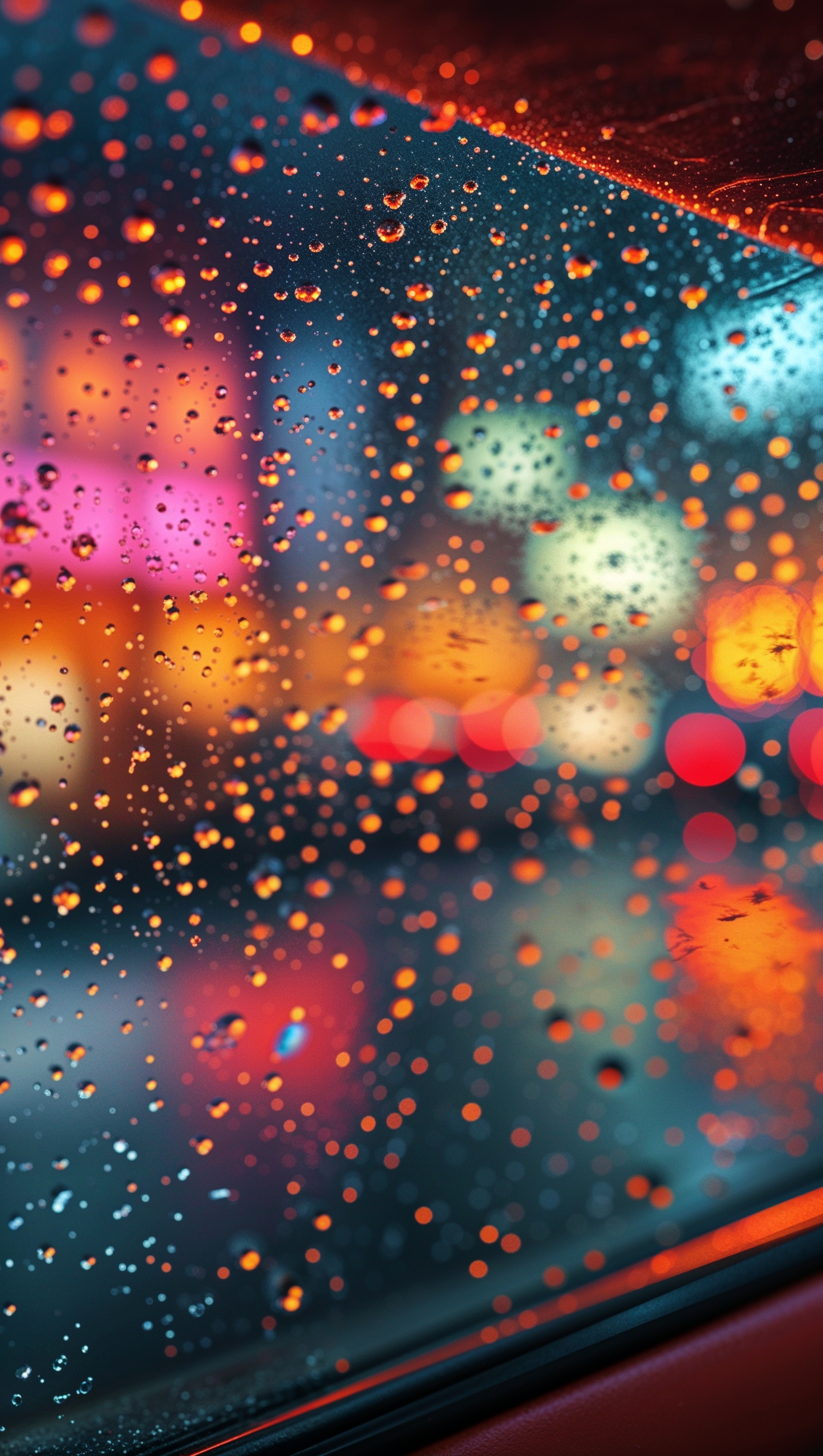 1664x2944 Raindrops on a car window in September, reflecting city lights