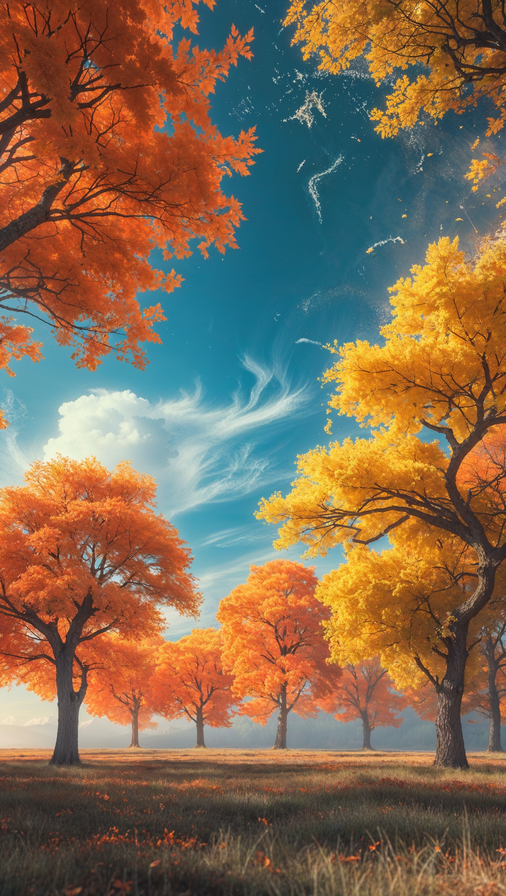1664x2944 iPhone wallpaper with a scenic view of orange and yellow trees in September