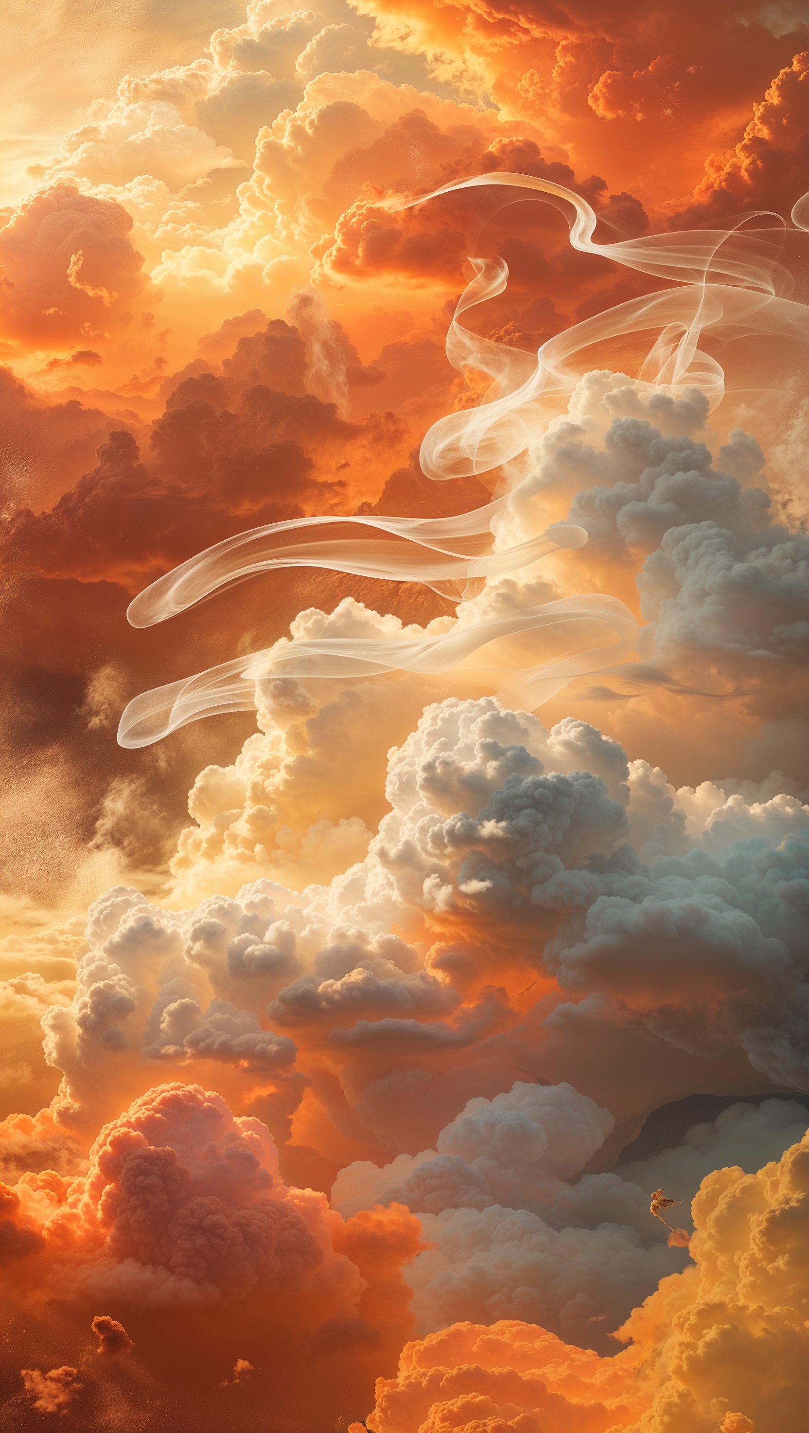 1664x2944 A wallpaper with warm September shades and digital painting of clouds