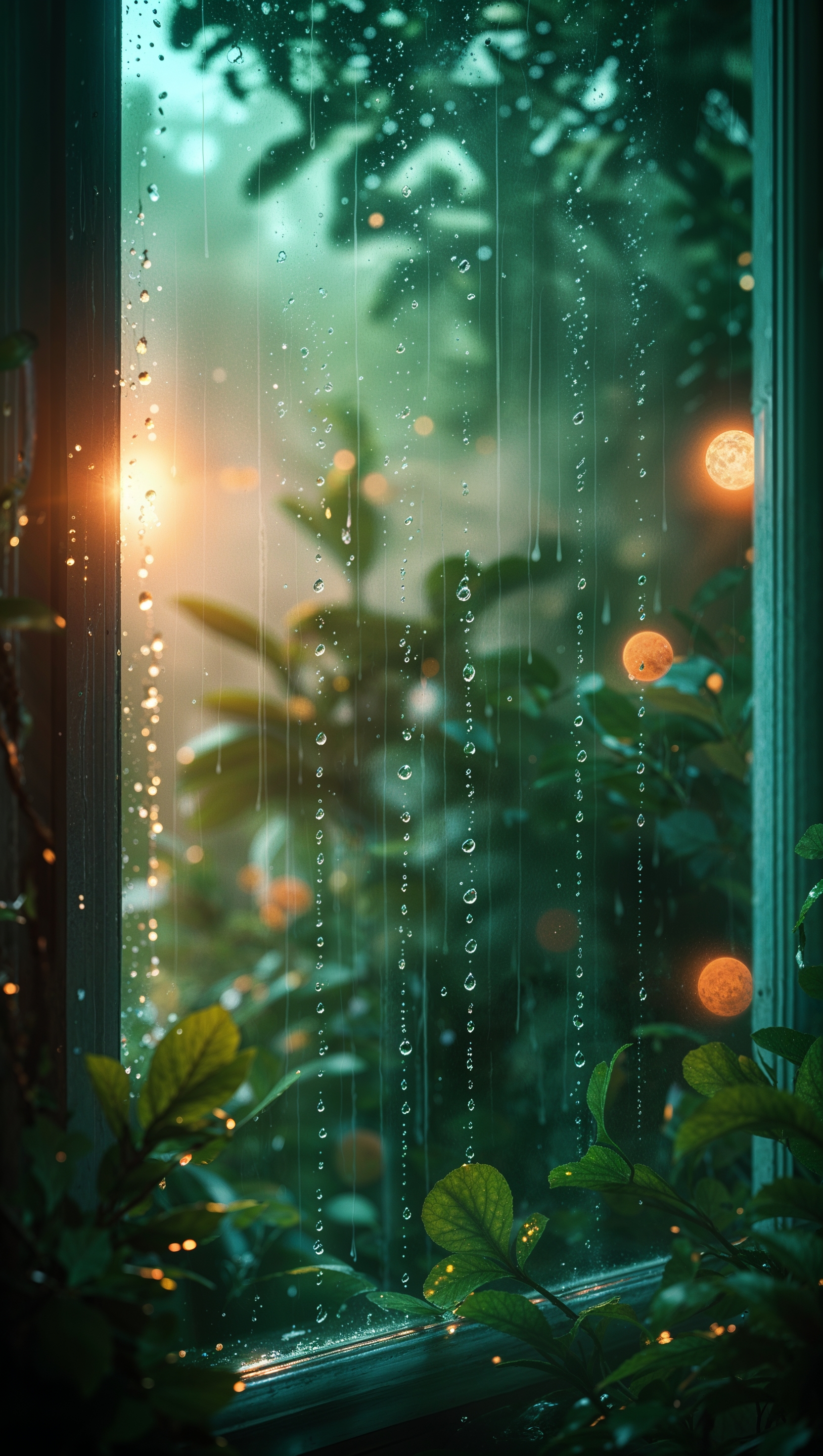 1664x2944 A digital painting of a window with September rain falling on the glass