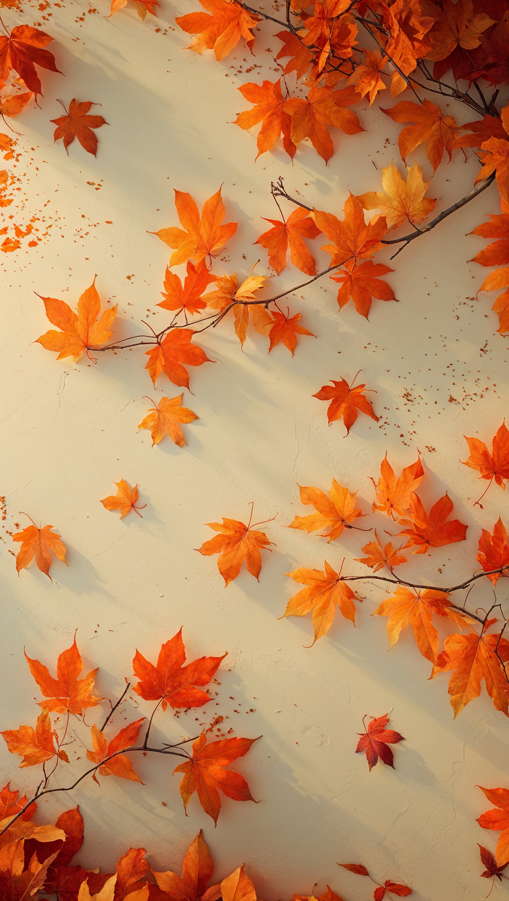 1664x2944 Minimal wallpaper with orange autumn leaves on a cream background