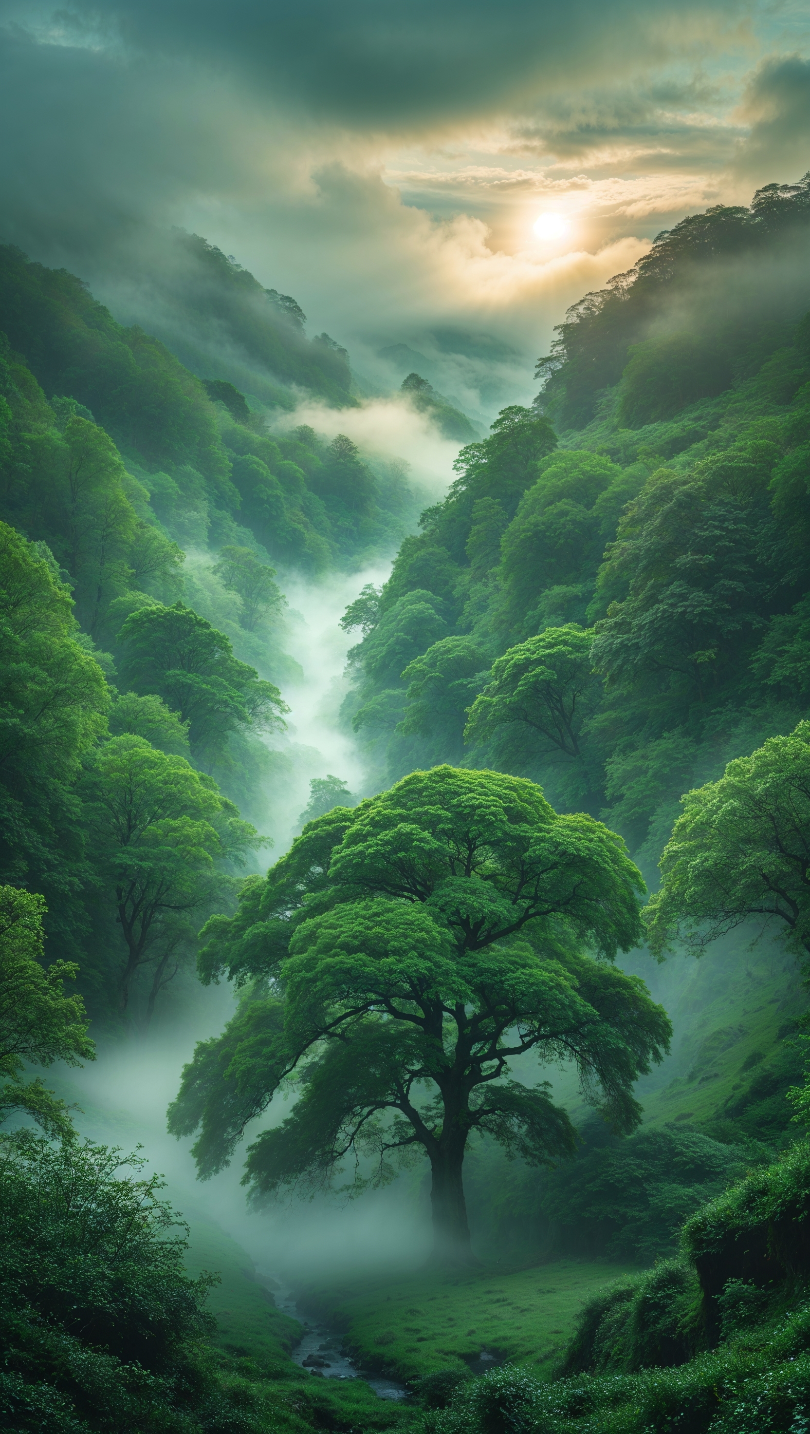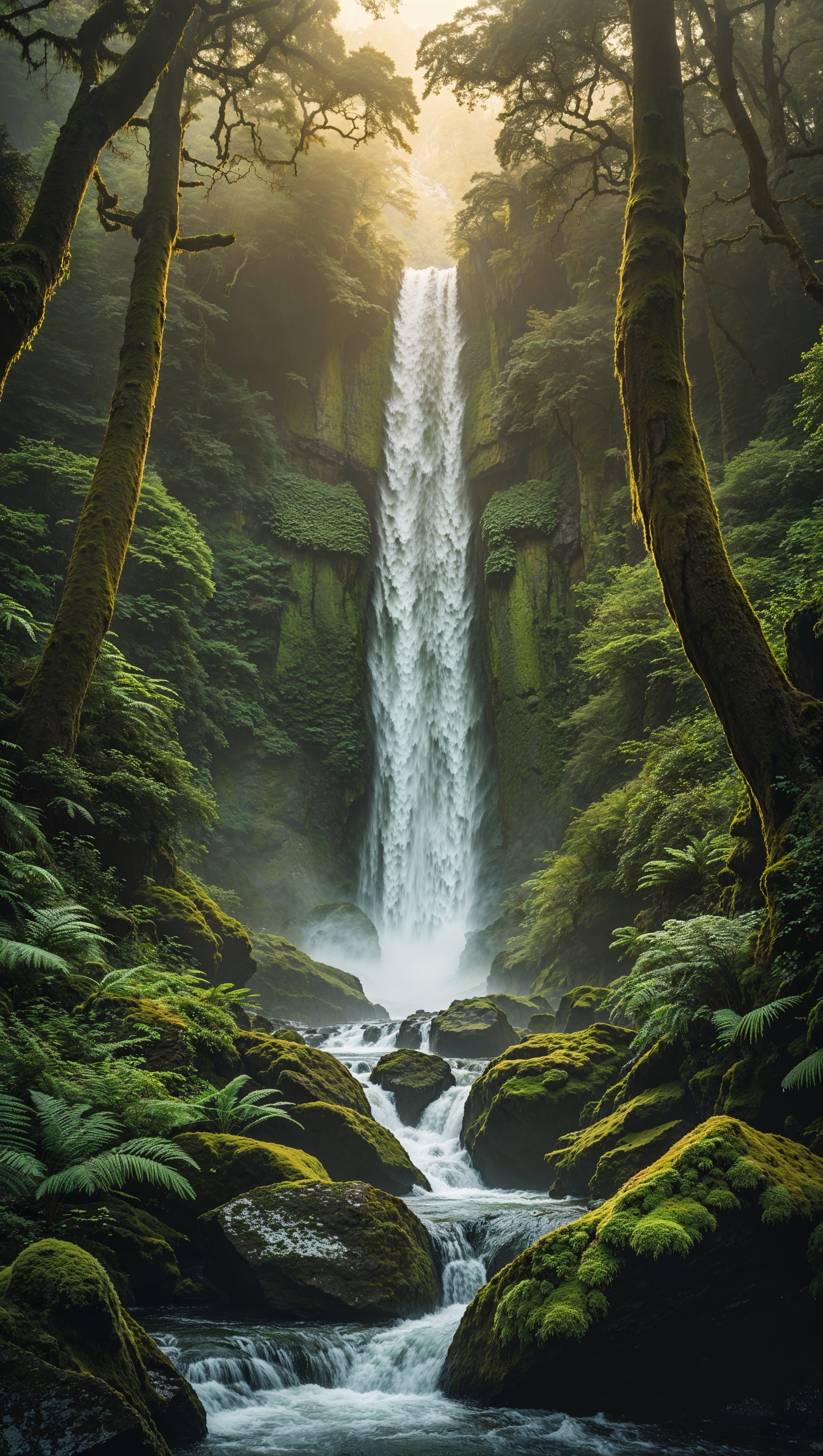 1664x2944 Tropical rainforest with sunlight filtering through leaves