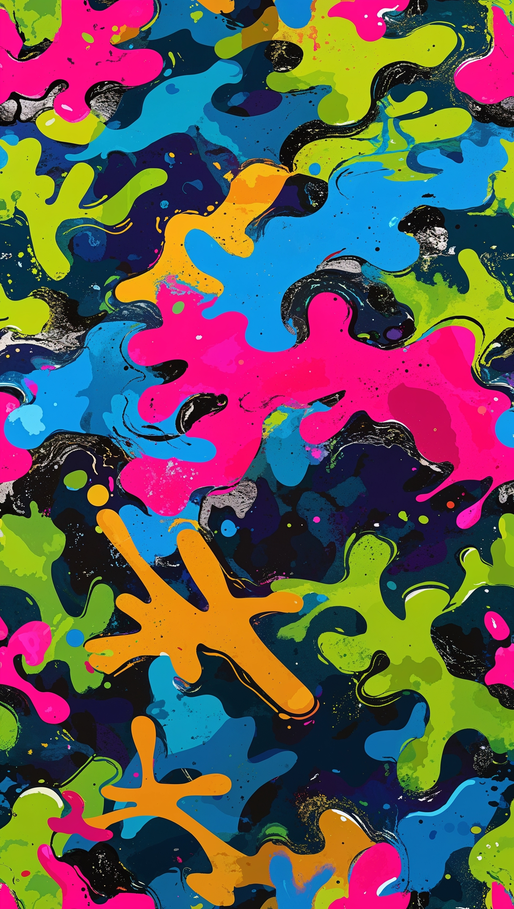 1664x2944 Graffiti camo with vibrant street art colors, iPhone background