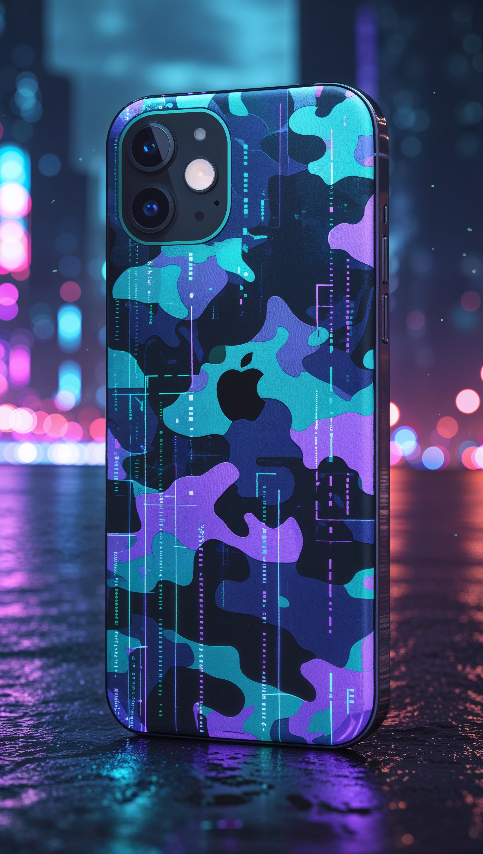 1664x2944 Digital camo in neon colors, futuristic iPhone background