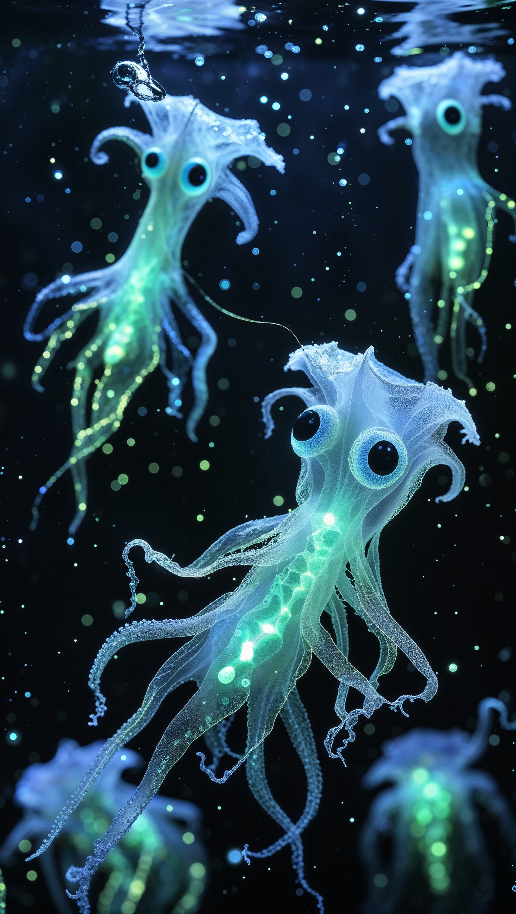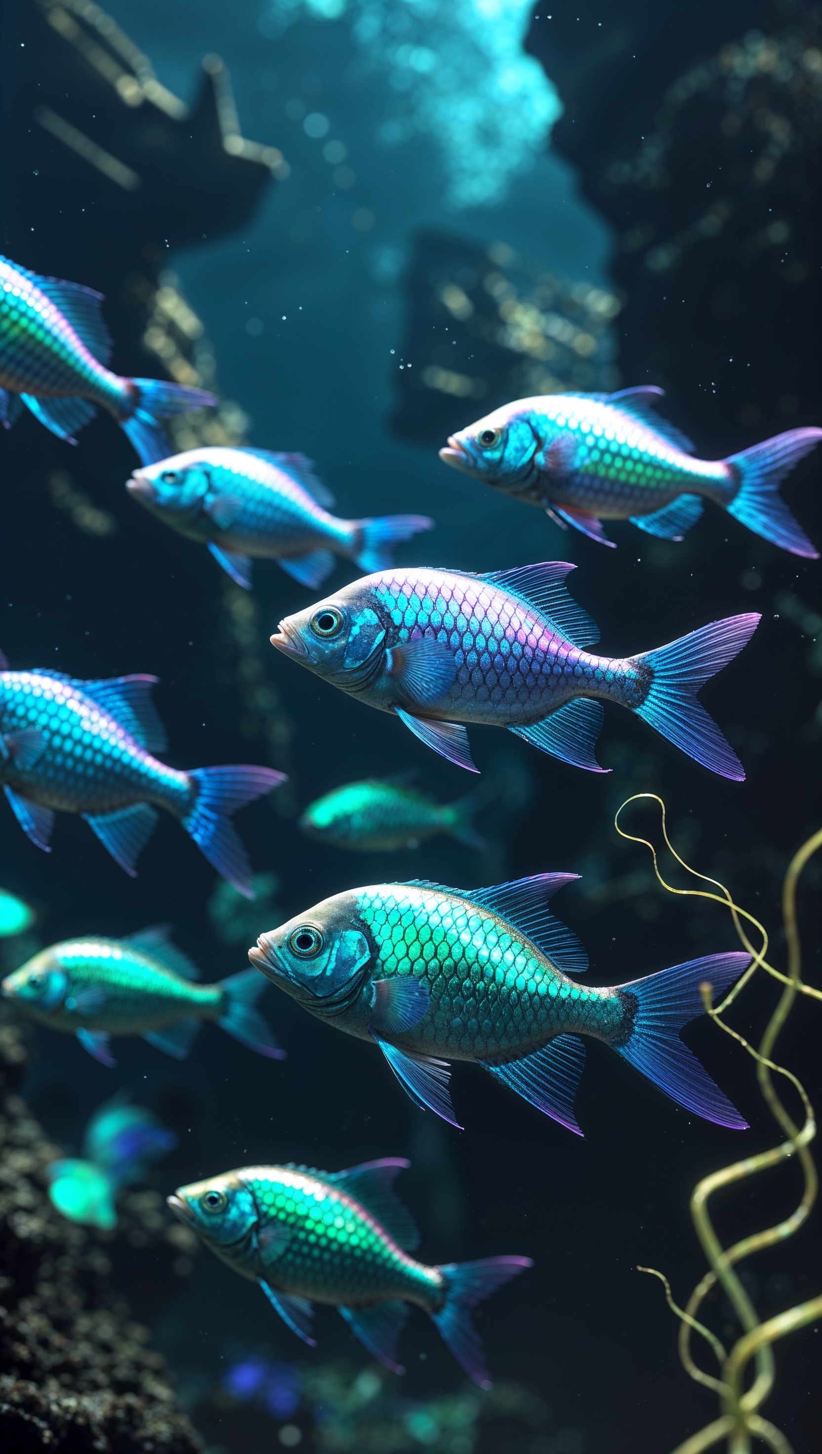 1664x2944 Glowing fish in the darkness of the ocean depths