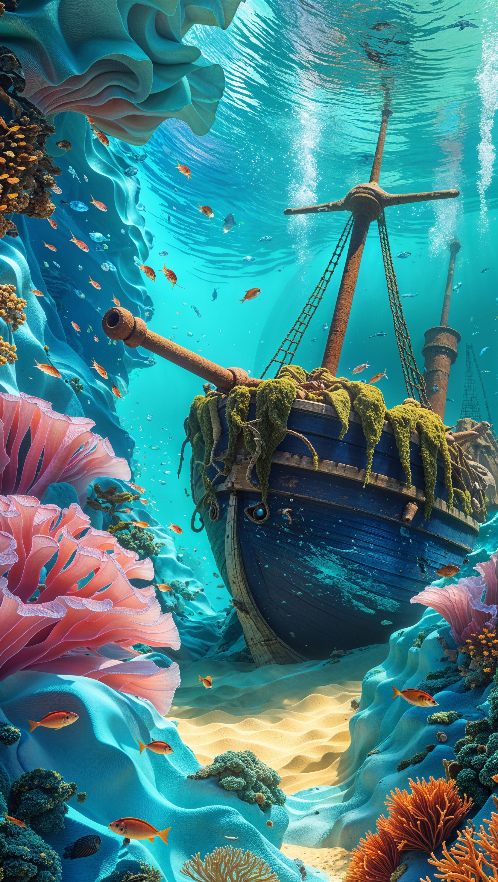 1664x2944 Fantasy-inspired underwater world with neon colors