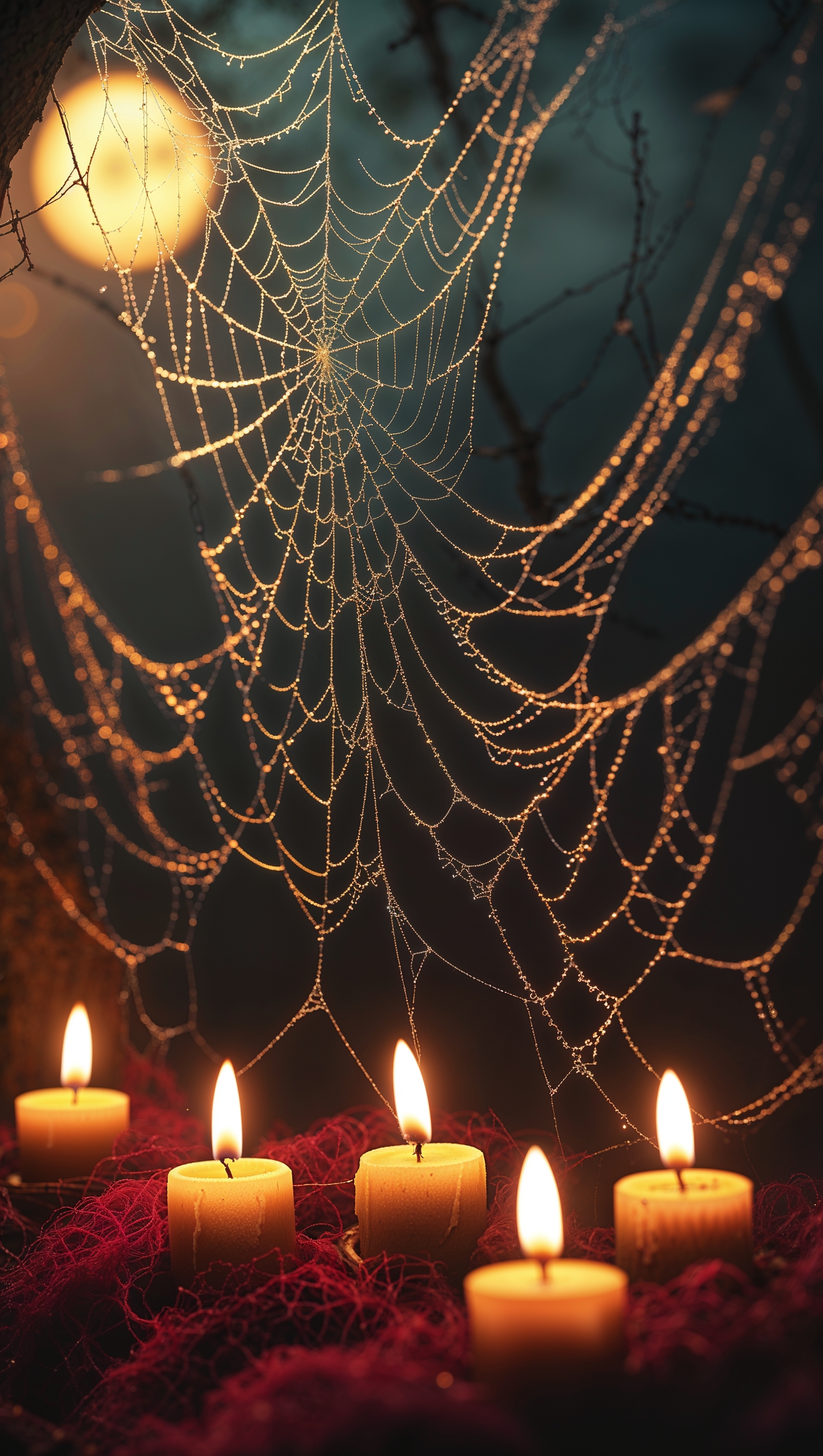 1664x2944 iPhone wallpaper with candle lights and spider webs