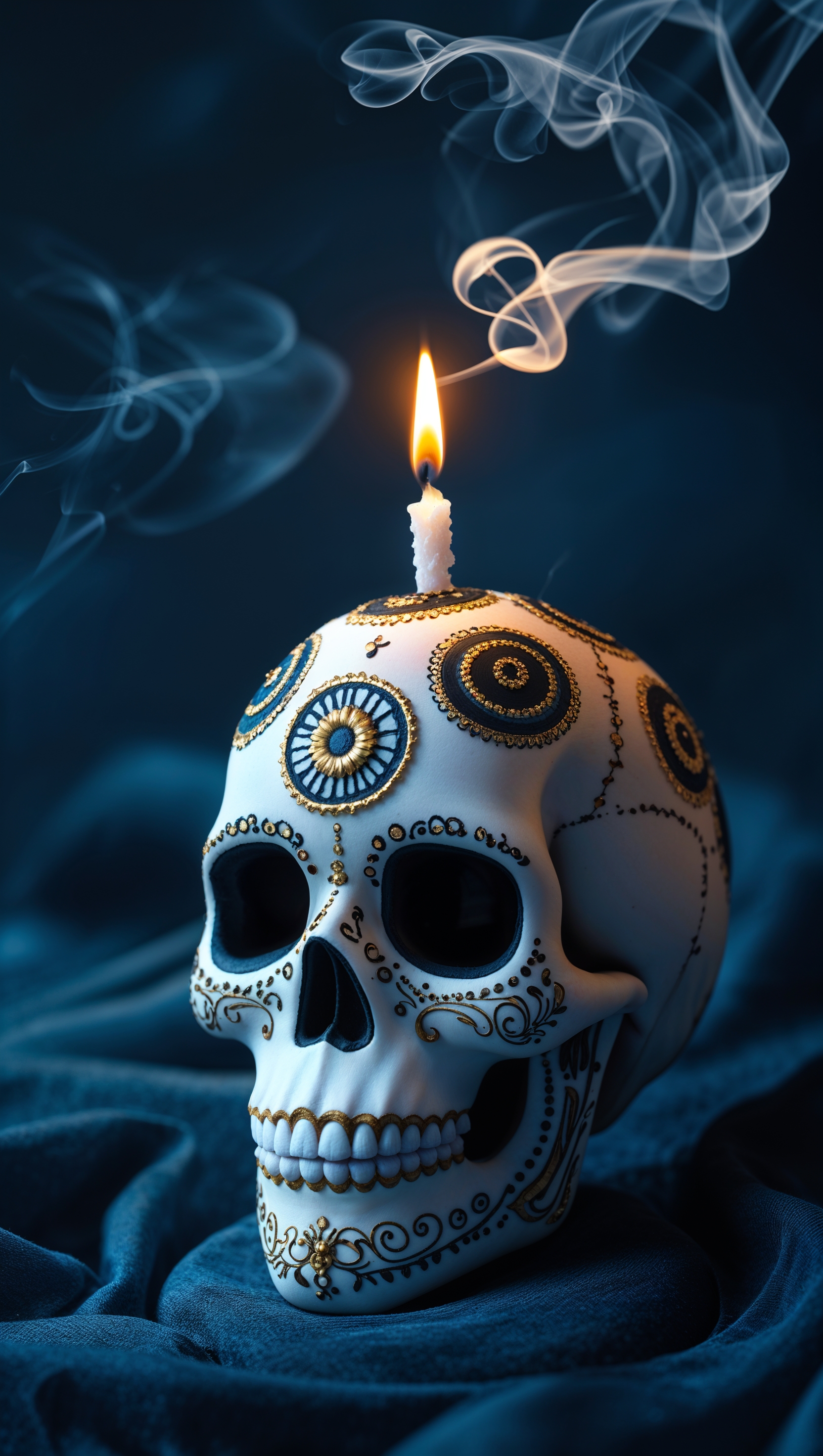 1664x2944 iPhone wallpaper with skull topped by a lit candle