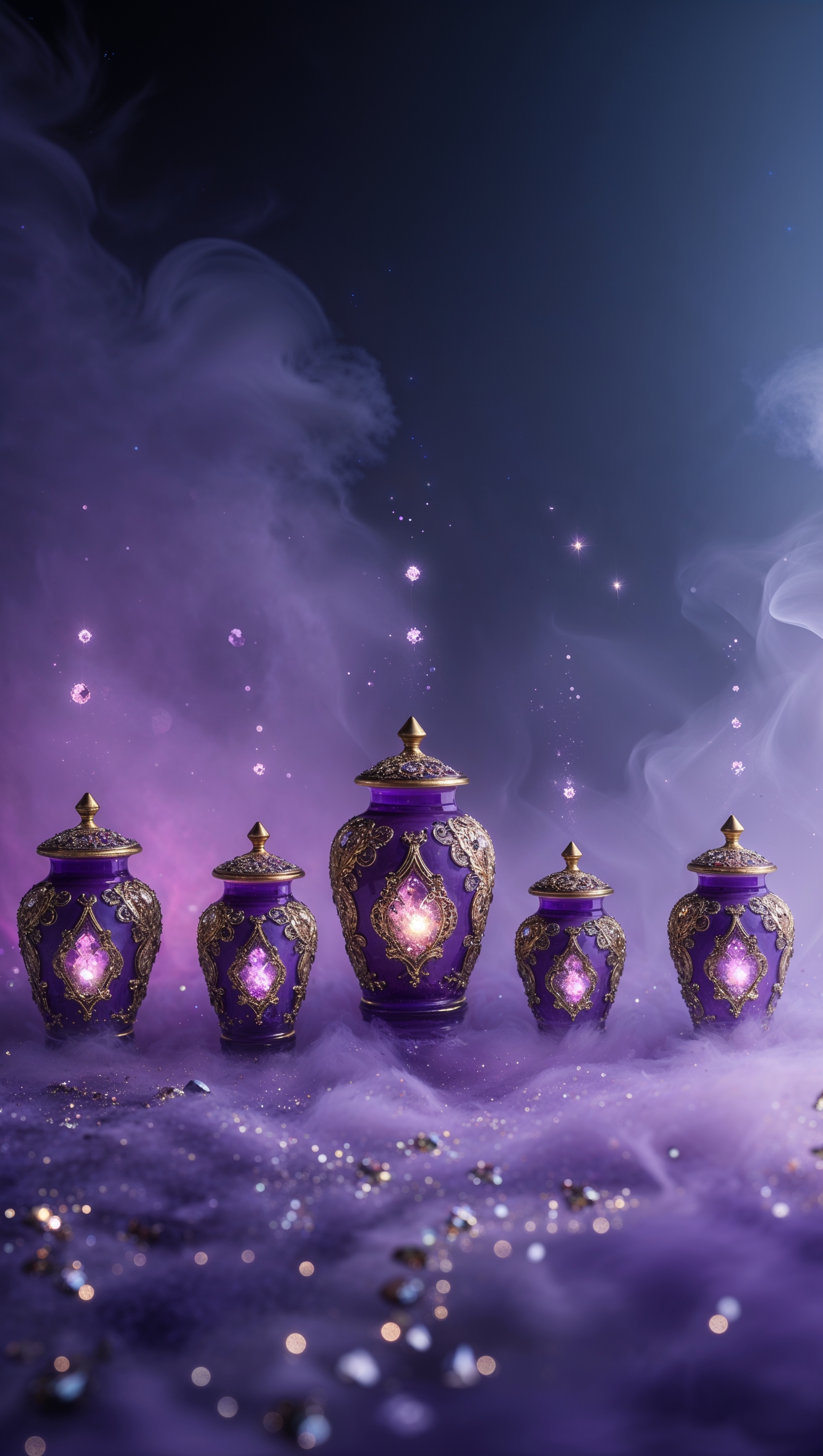1664x2944 iPhone wallpaper with magic jars and purple mist