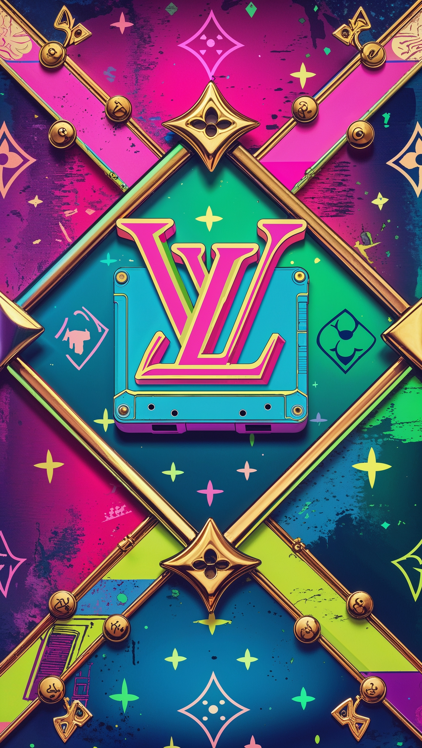 1664x2944 Colorful pop art design with Louis Vuitton logo