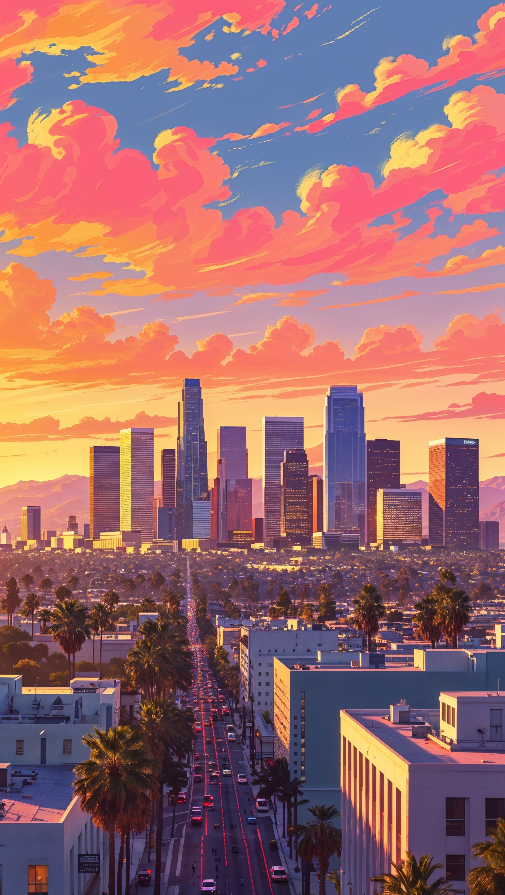 1664x2944 Los Angeles in digital painting style