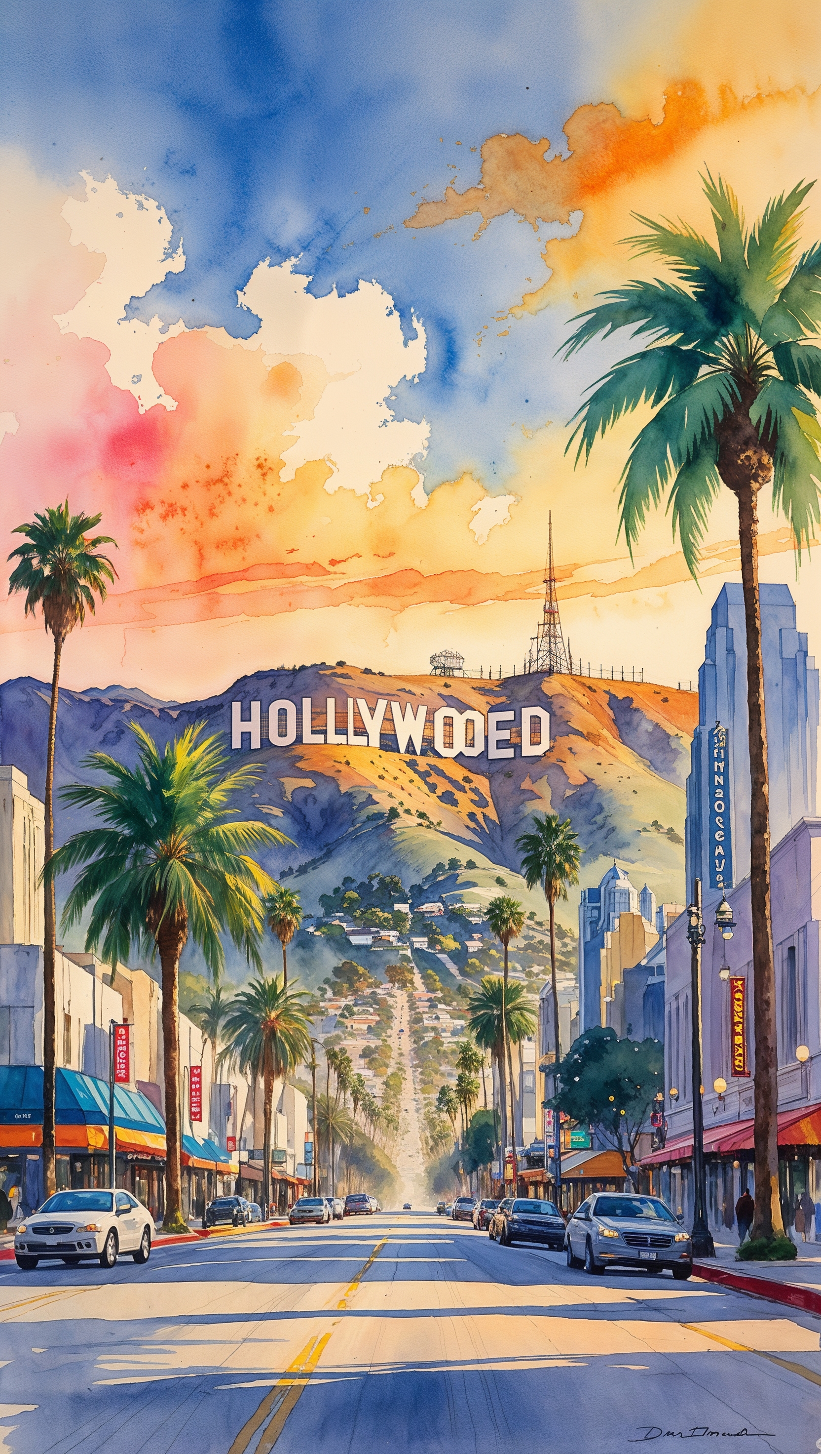 1664x2944 Watercolor painting of Los Angeles