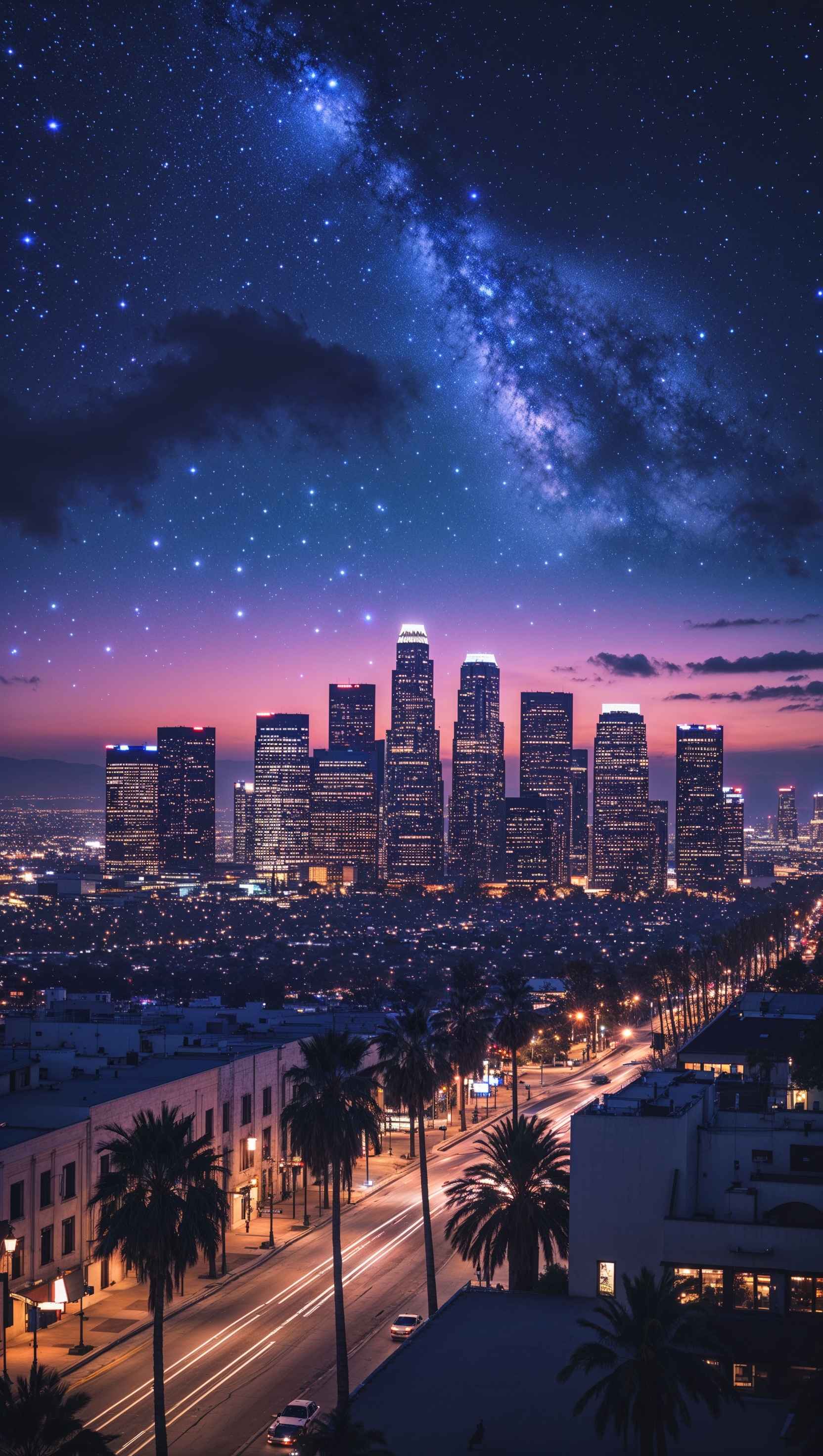 1664x2944 Night view of Los Angeles with a starry sky