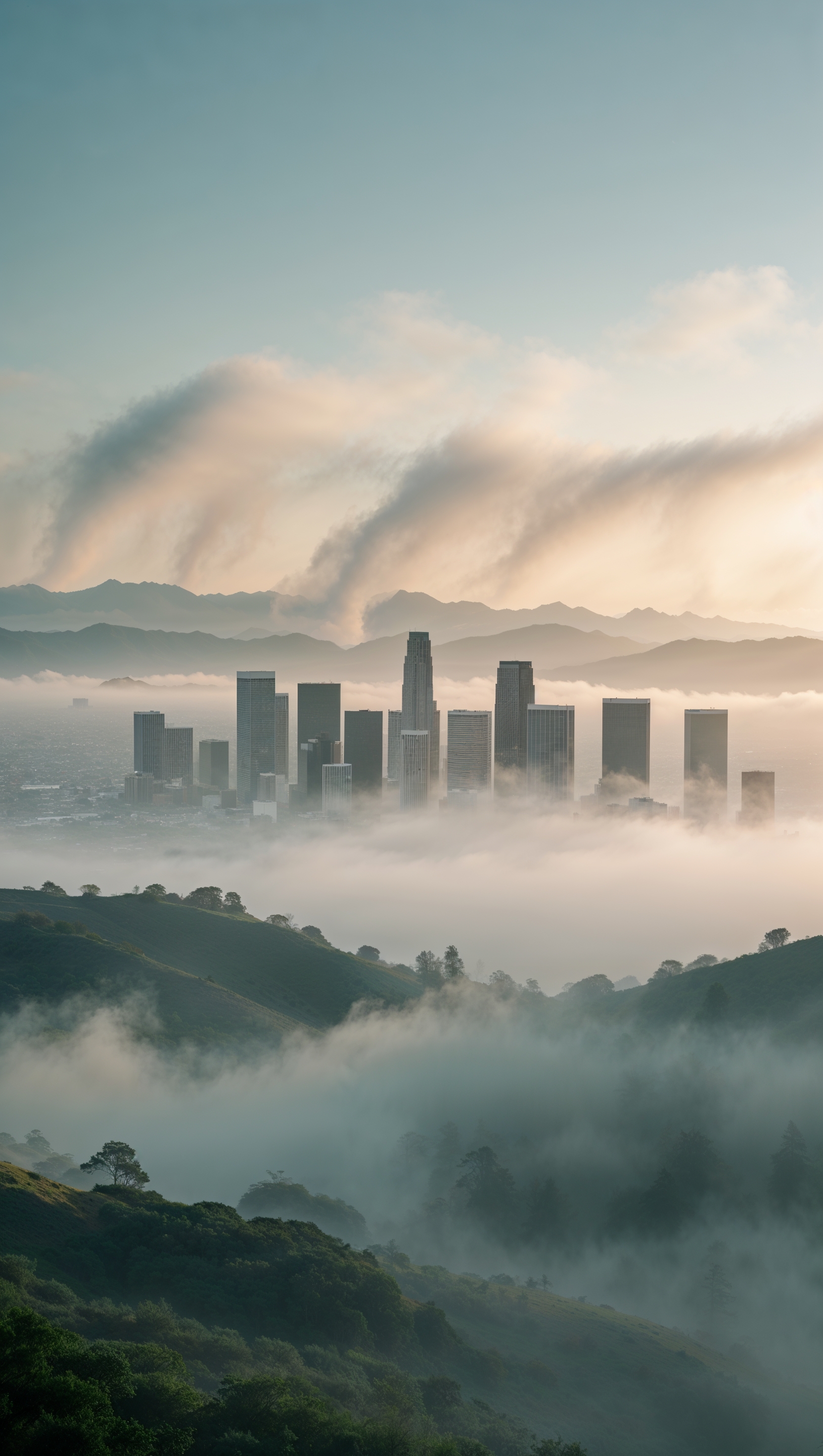 1664x2944 Los Angeles at sunrise with light fog