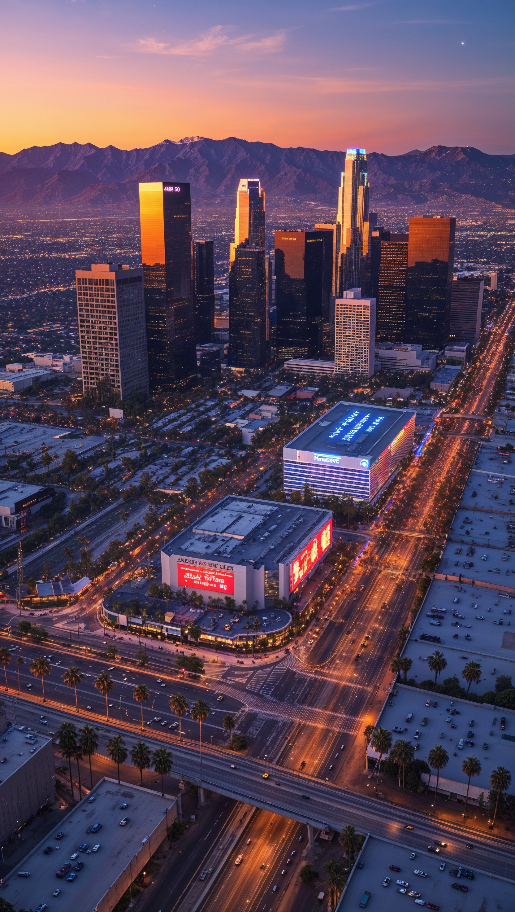 1664x2944 Bird's eye view of Los Angeles at dusk