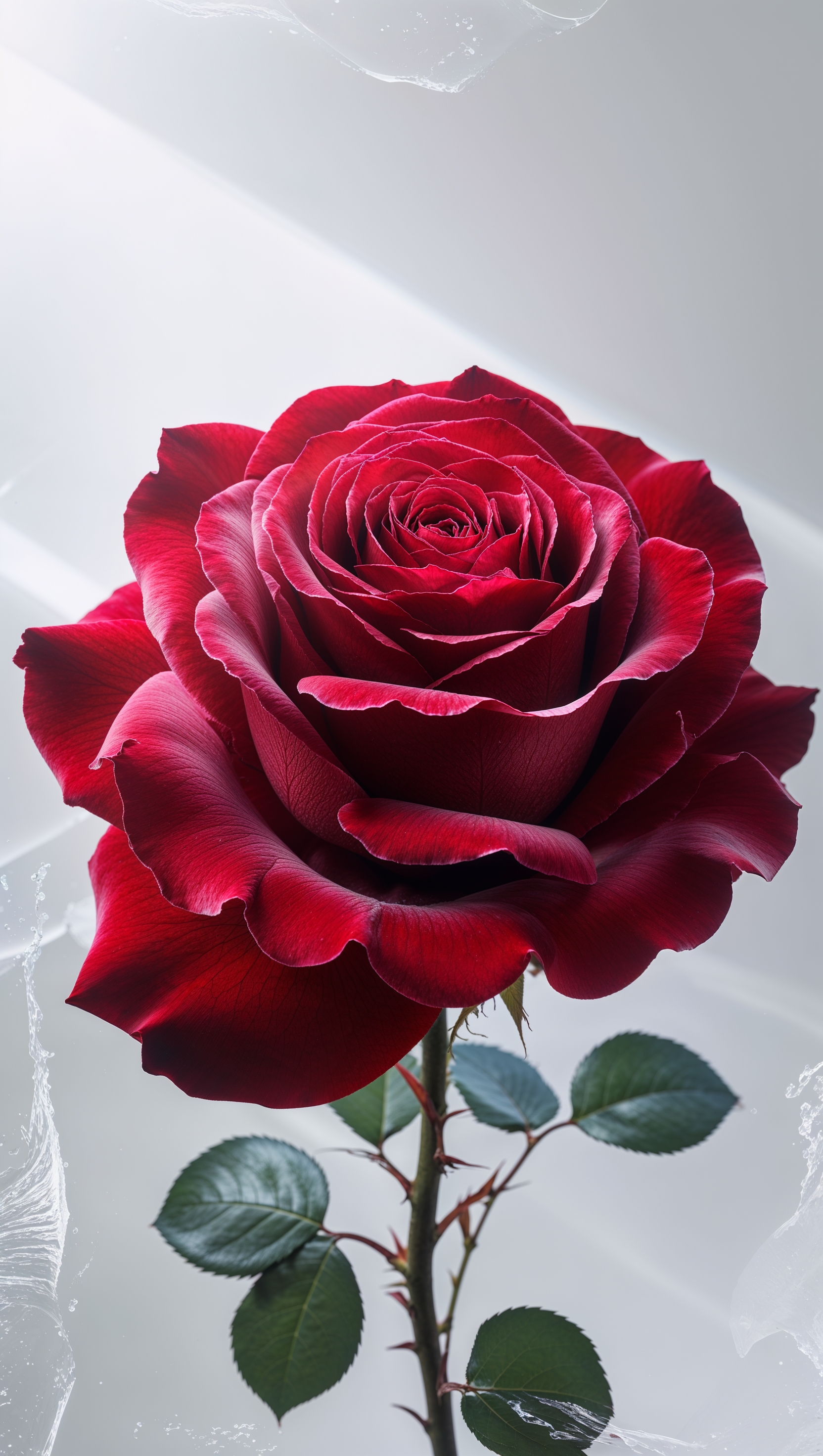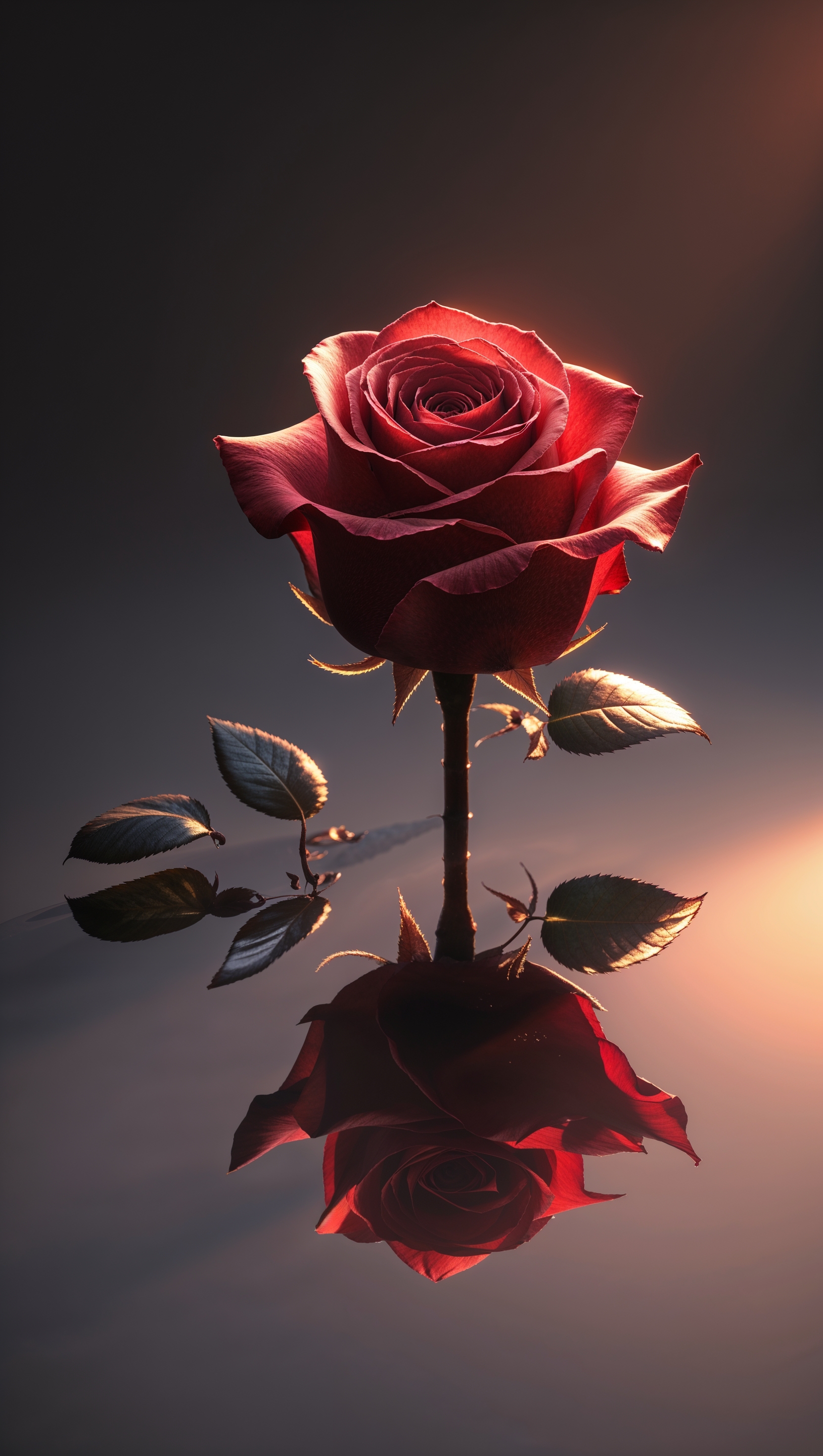 1664x2944 iPhone wallpaper with a red rose and soft light reflection