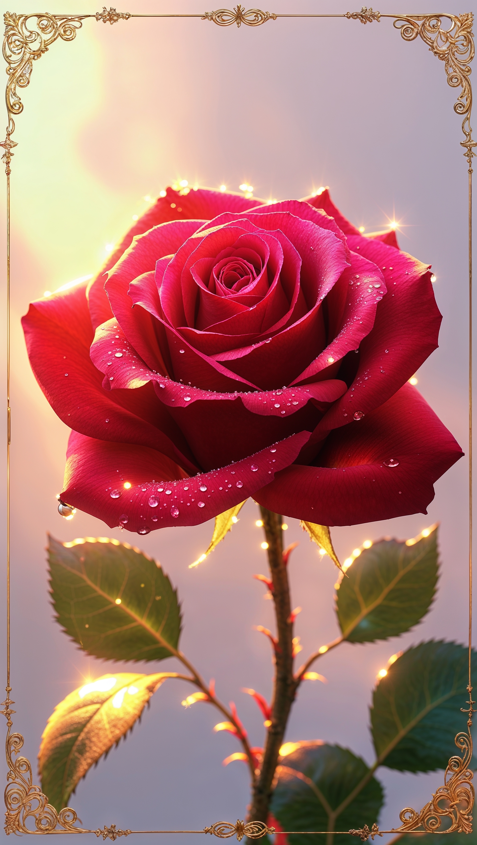 1664x2944 iPhone wallpaper with a red rose and golden border