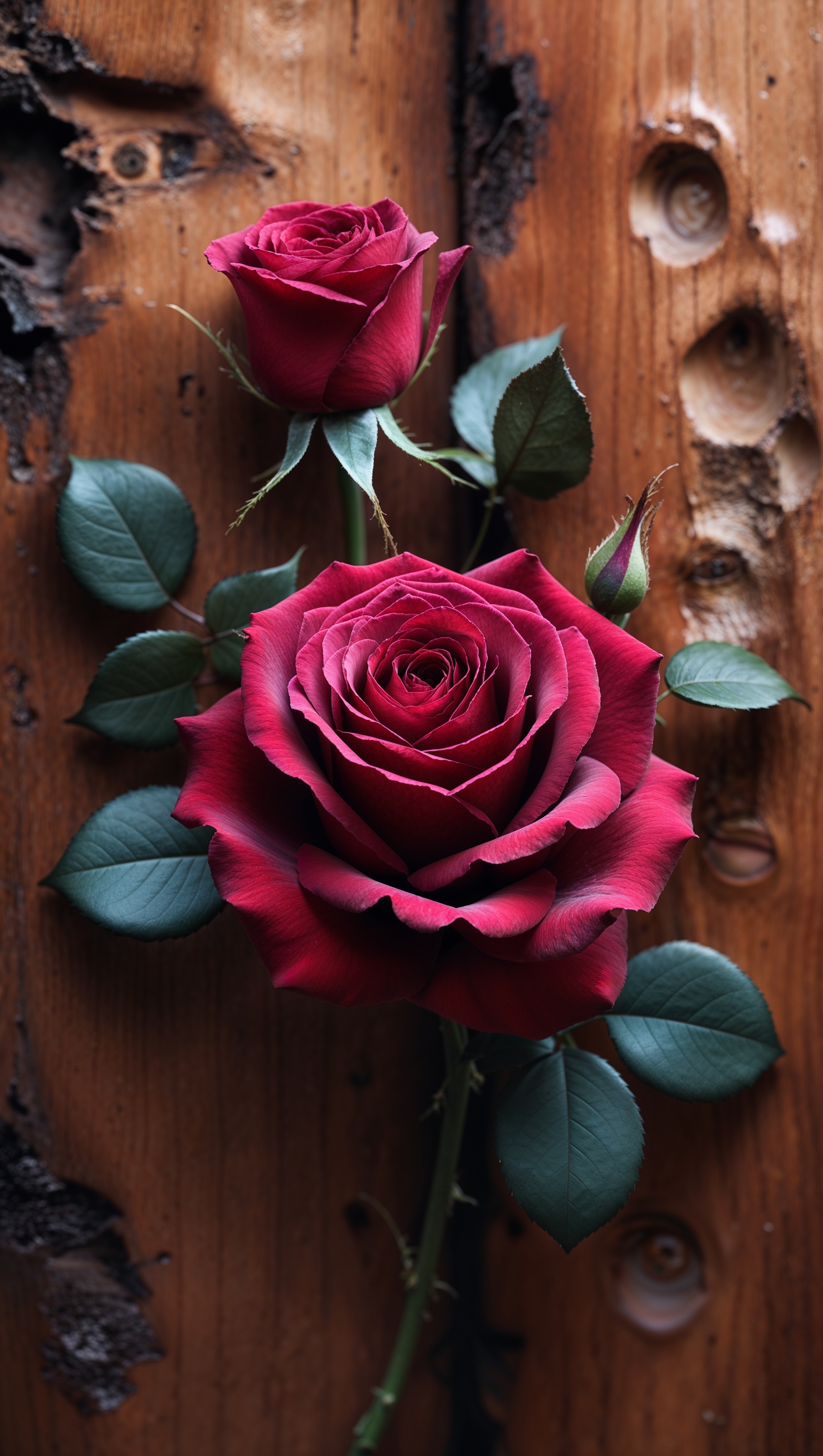 1664x2944 iPhone wallpaper with a red rose on a wooden background