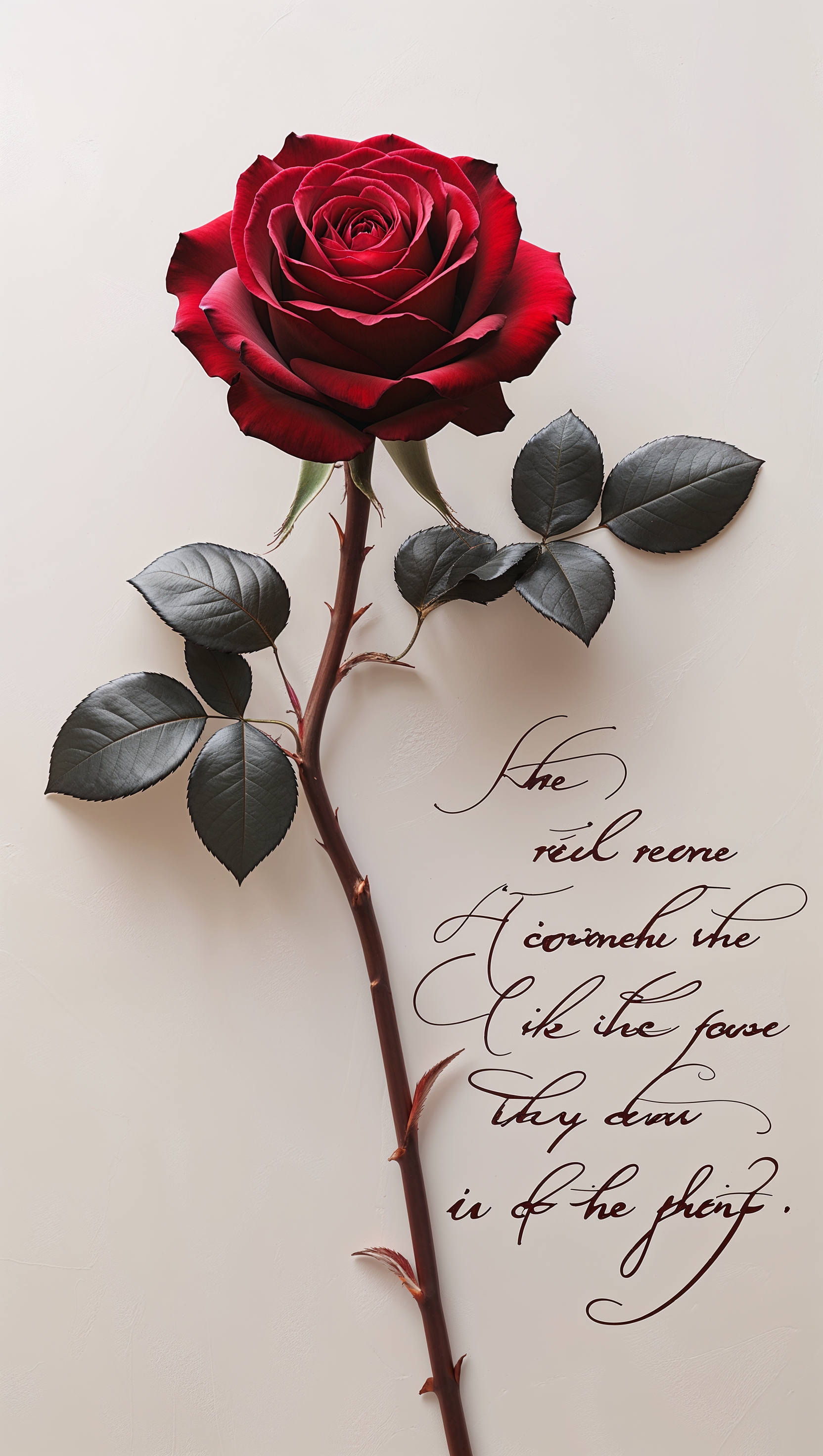 1664x2944 iPhone wallpaper with a red rose and handwritten font
