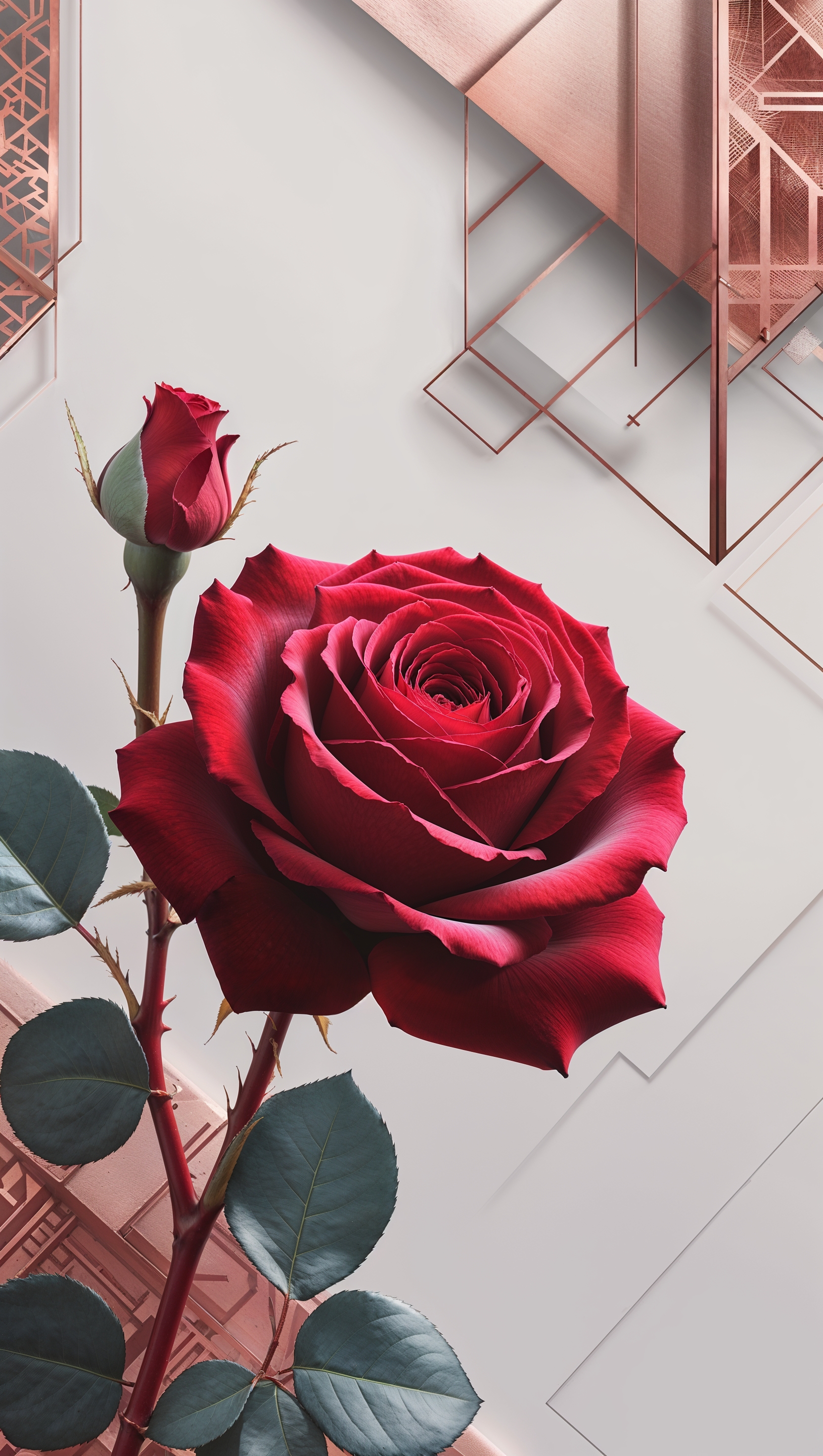 1664x2944 iPhone wallpaper with a red rose and simple geometric patterns
