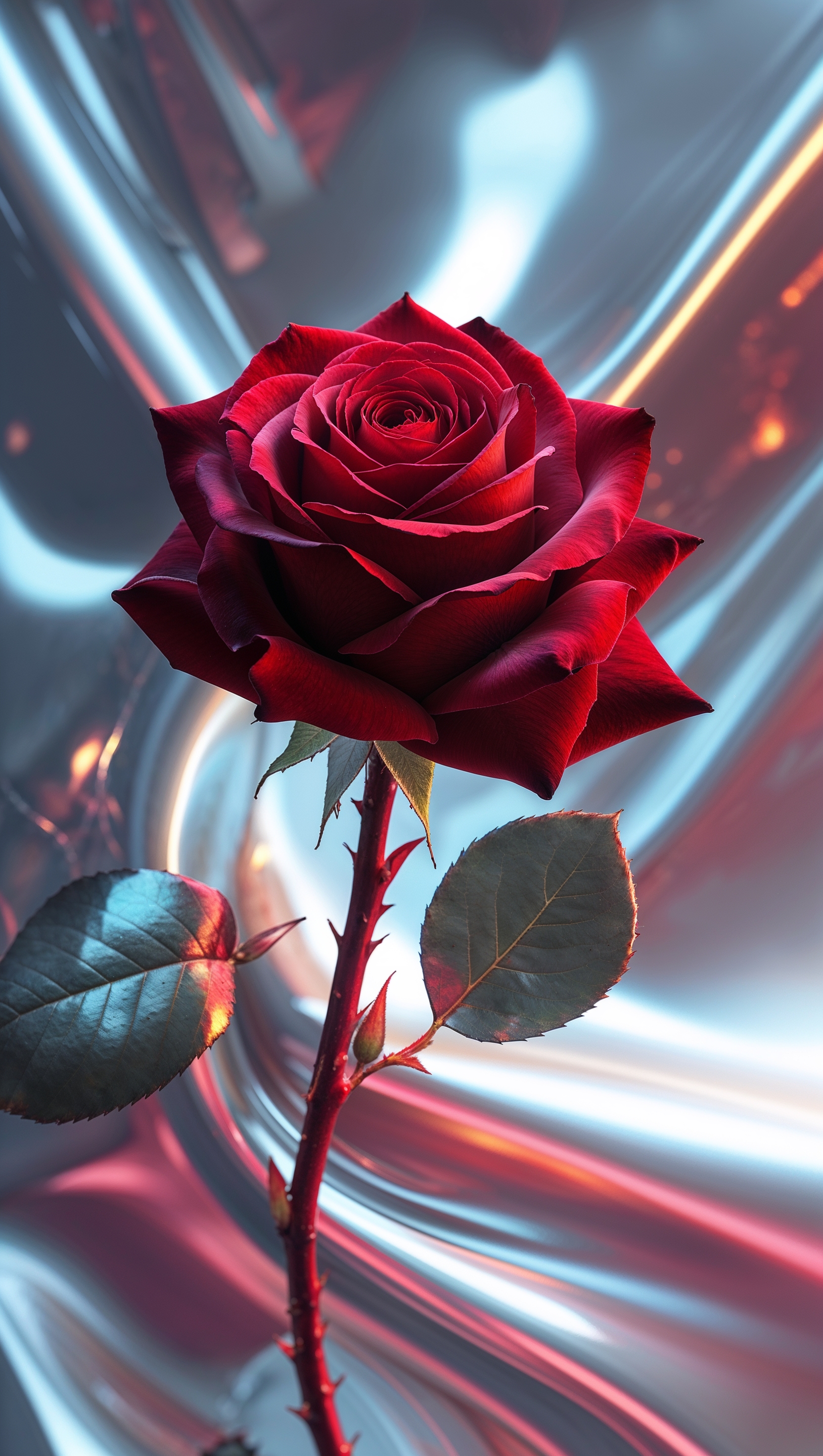 1664x2944 iPhone wallpaper with a red rose and metallic glossy effect