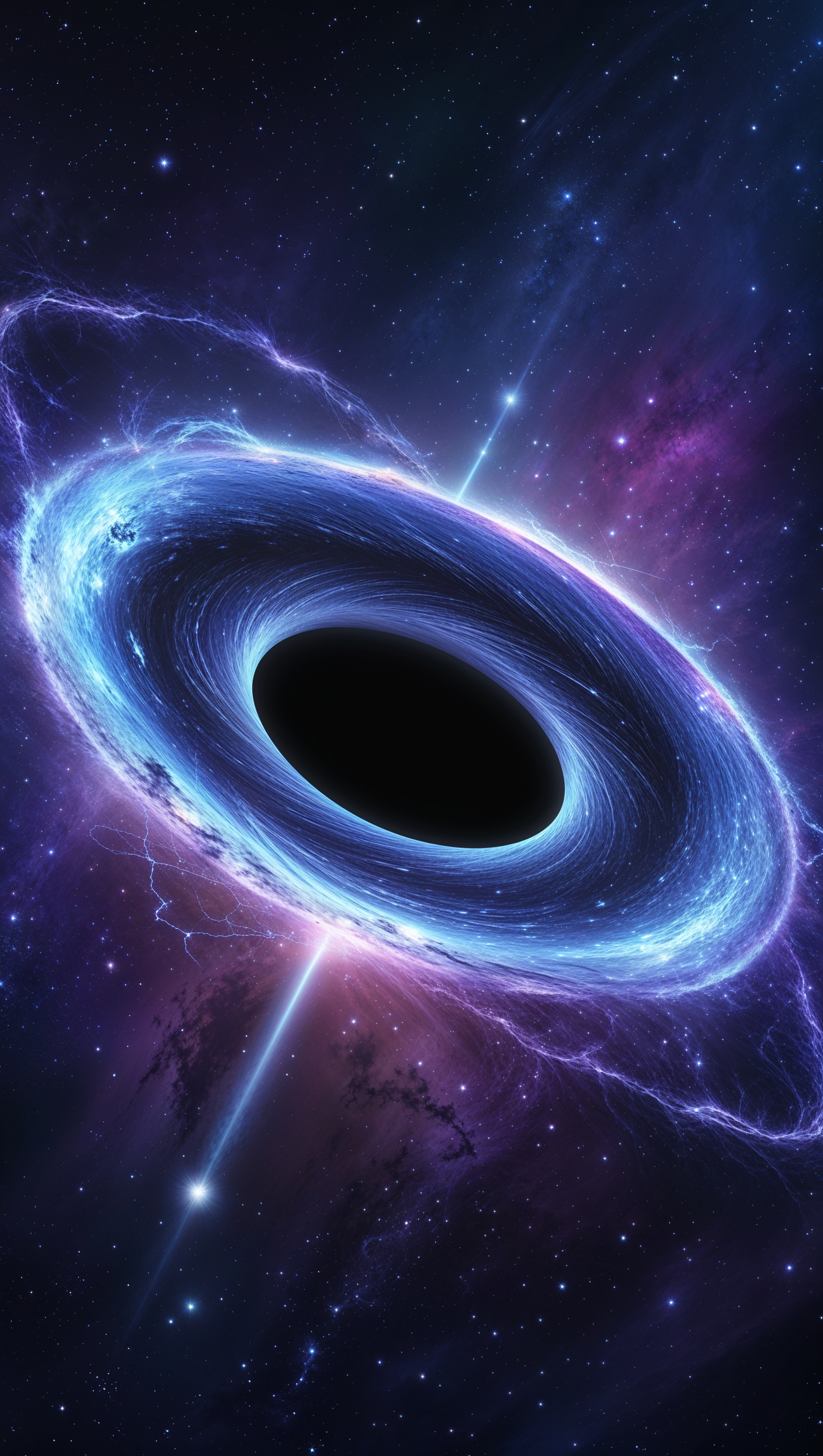 1664x2944 A black hole with glowing accretion disk, mysterious look, vertical iPhone image, 4K