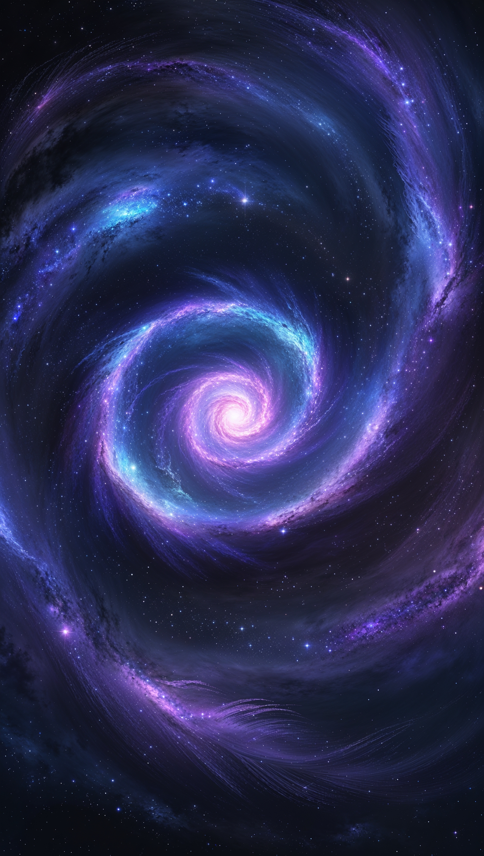 1664x2944 Top view of spiral galaxy, full detail and colorful lights, artistic 4K image