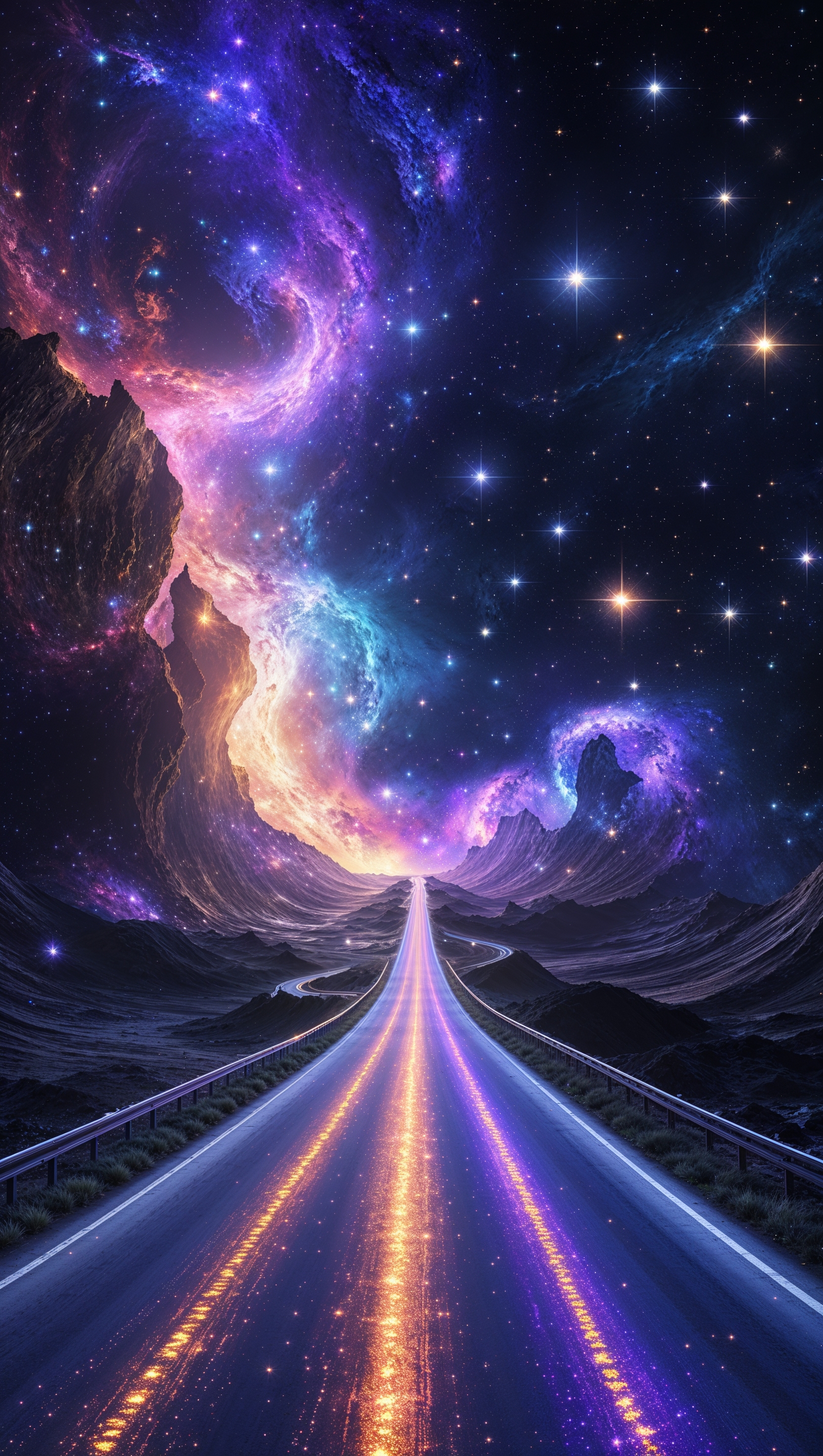 1664x2944 Cosmic road leading into the galaxy, blend of Earth and space, fantasy style, 4K