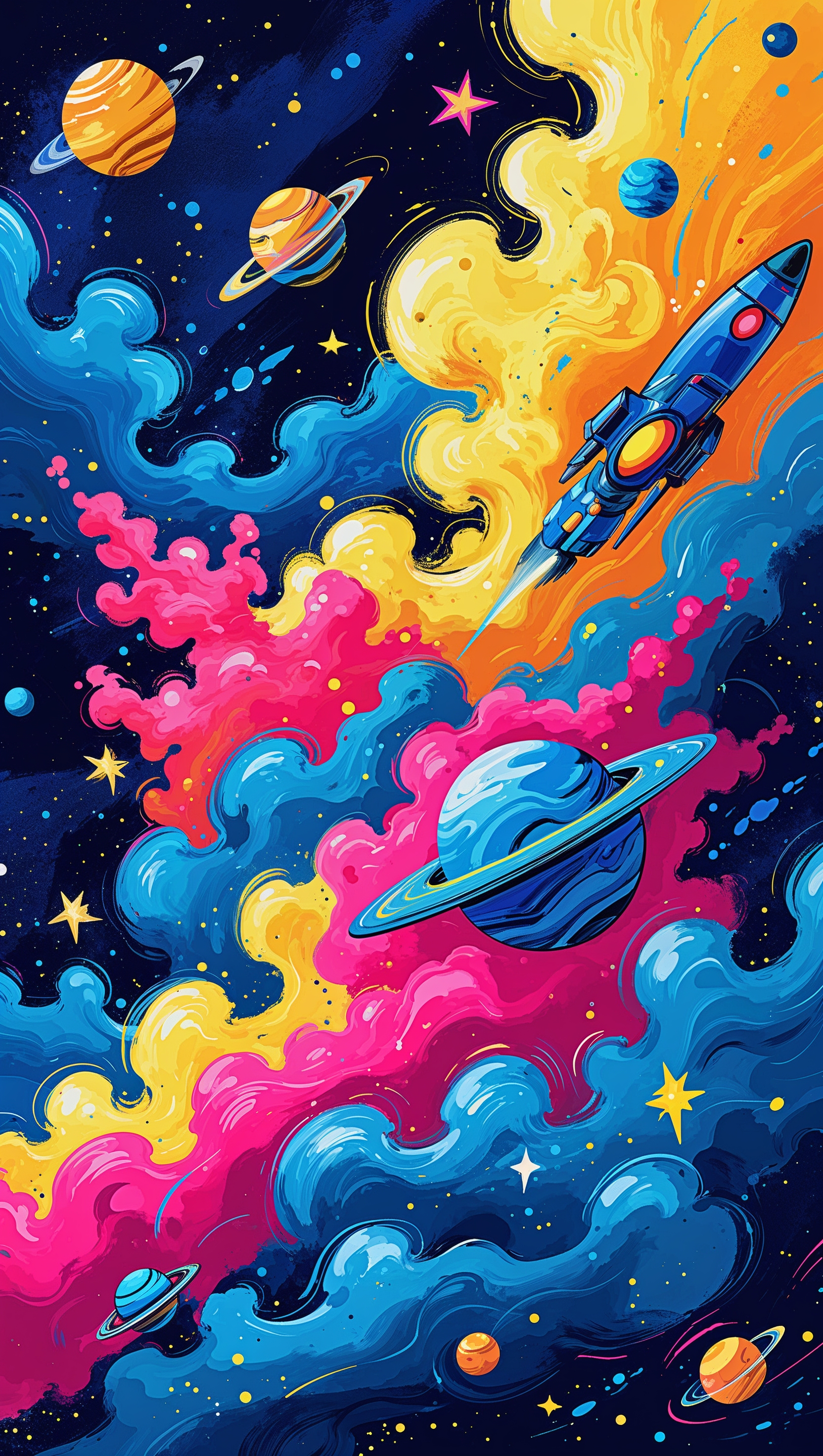 1664x2944 Digital painting of space with vivid colors, youth-friendly design, iPhone wallpaper
