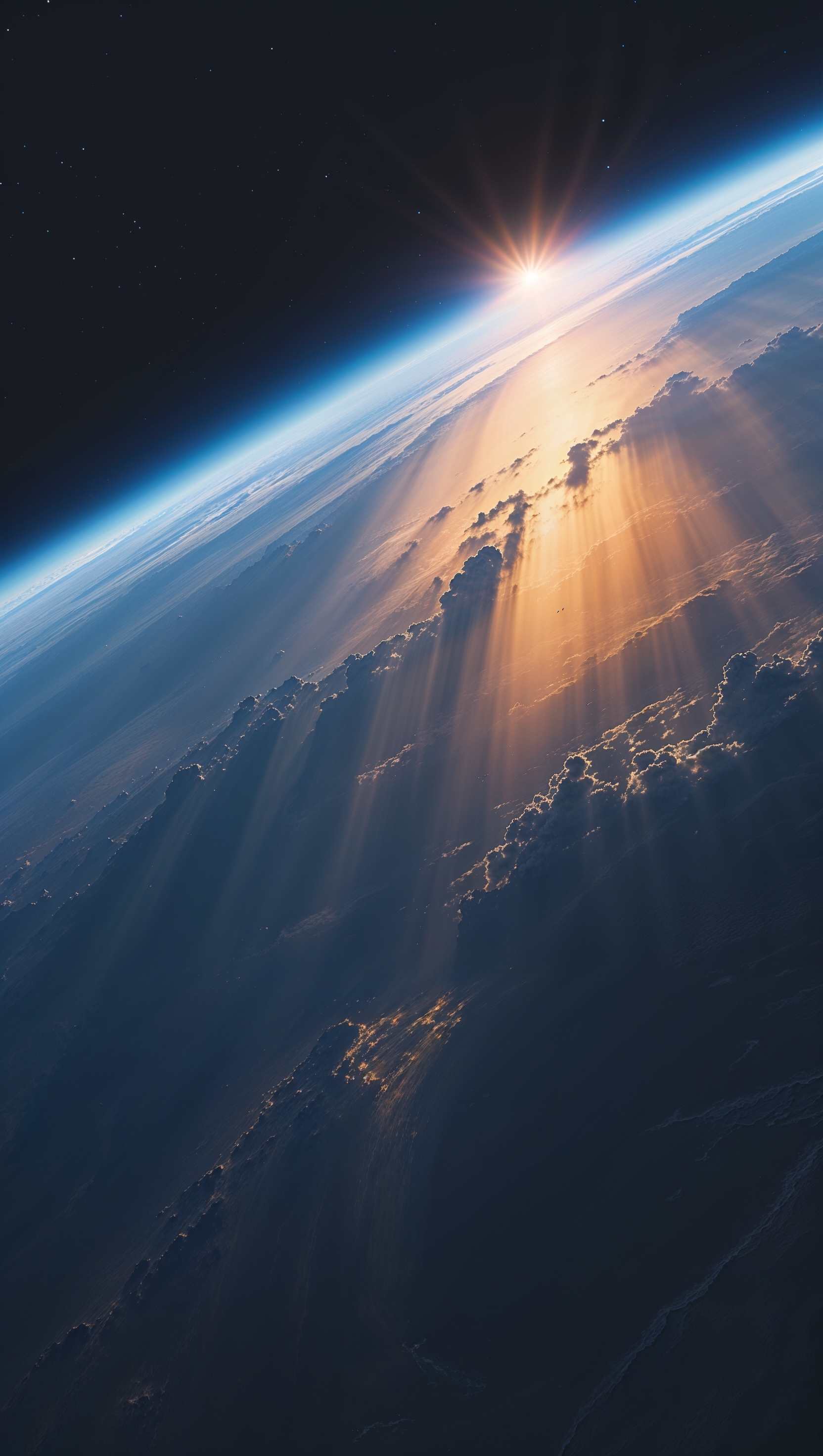 1664x2944 Earth rising from space horizon, sunlight glow, 4K iPhone wallpaper
