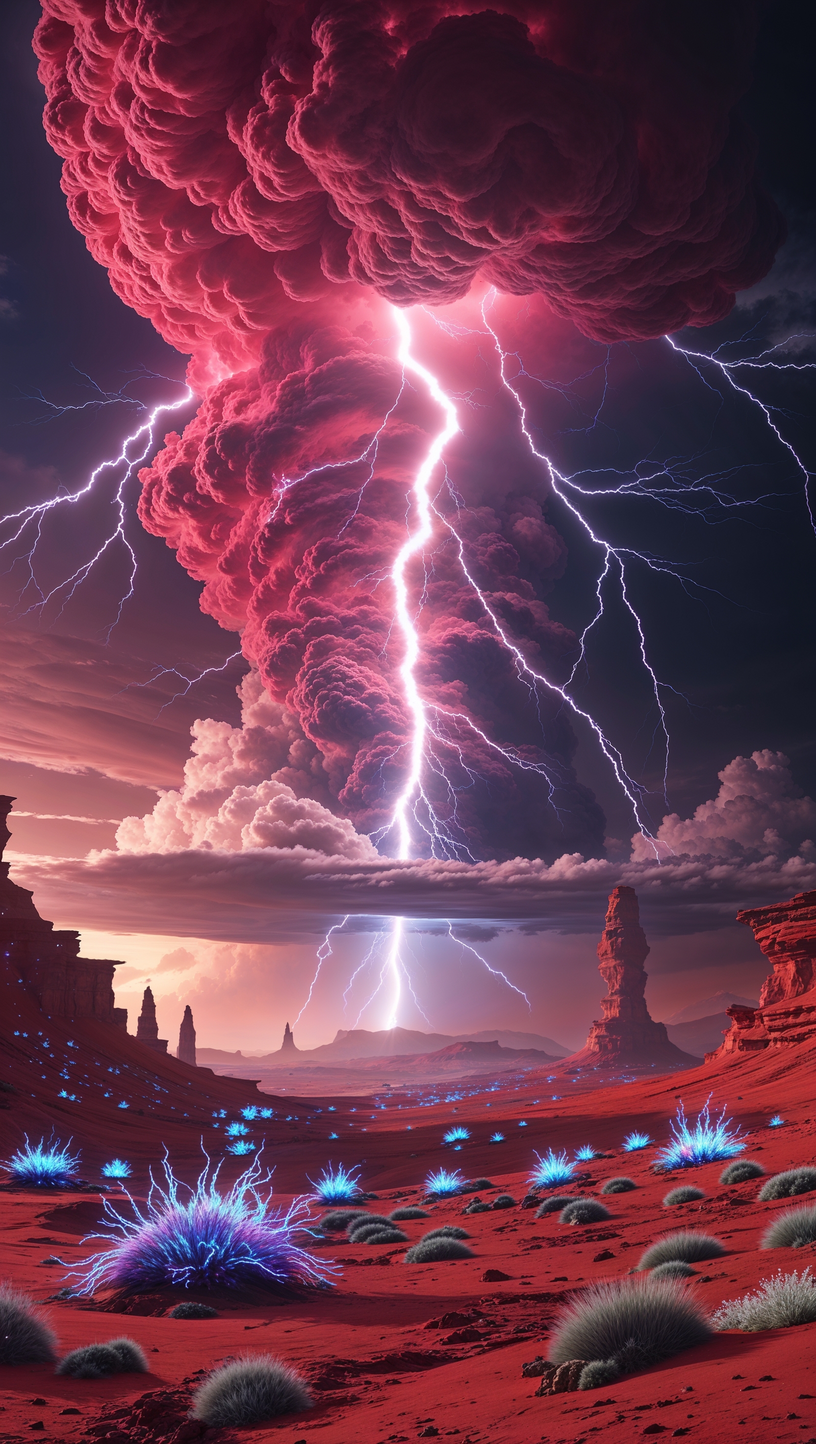 1664x2944 Lightning storm on an alien planet, stunning sci-fi scene, iPhone wallpaper, 4K