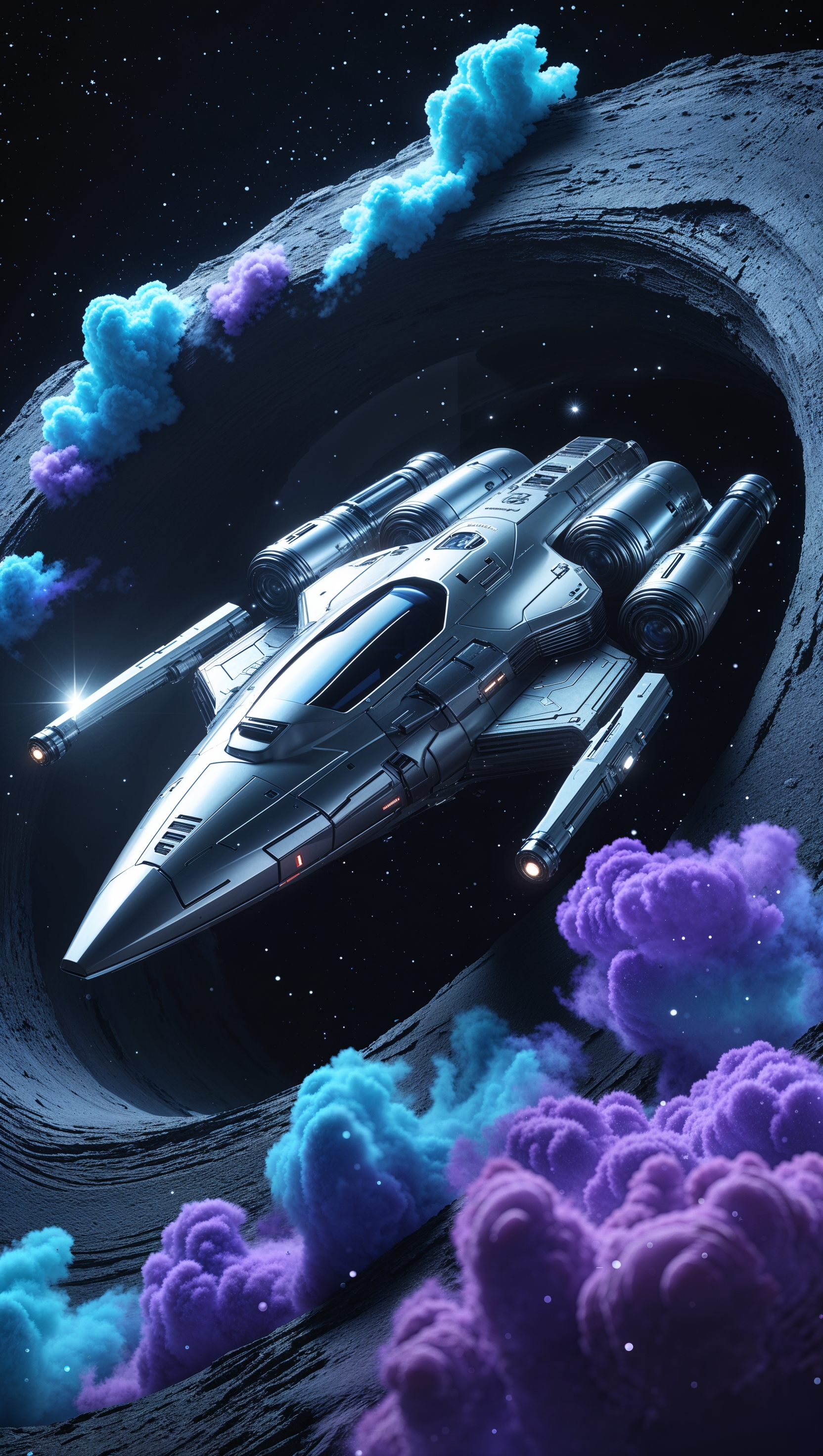 1664x2944 Spaceship traveling through a wormhole, sci-fi theme, ultra 4K for iPhone