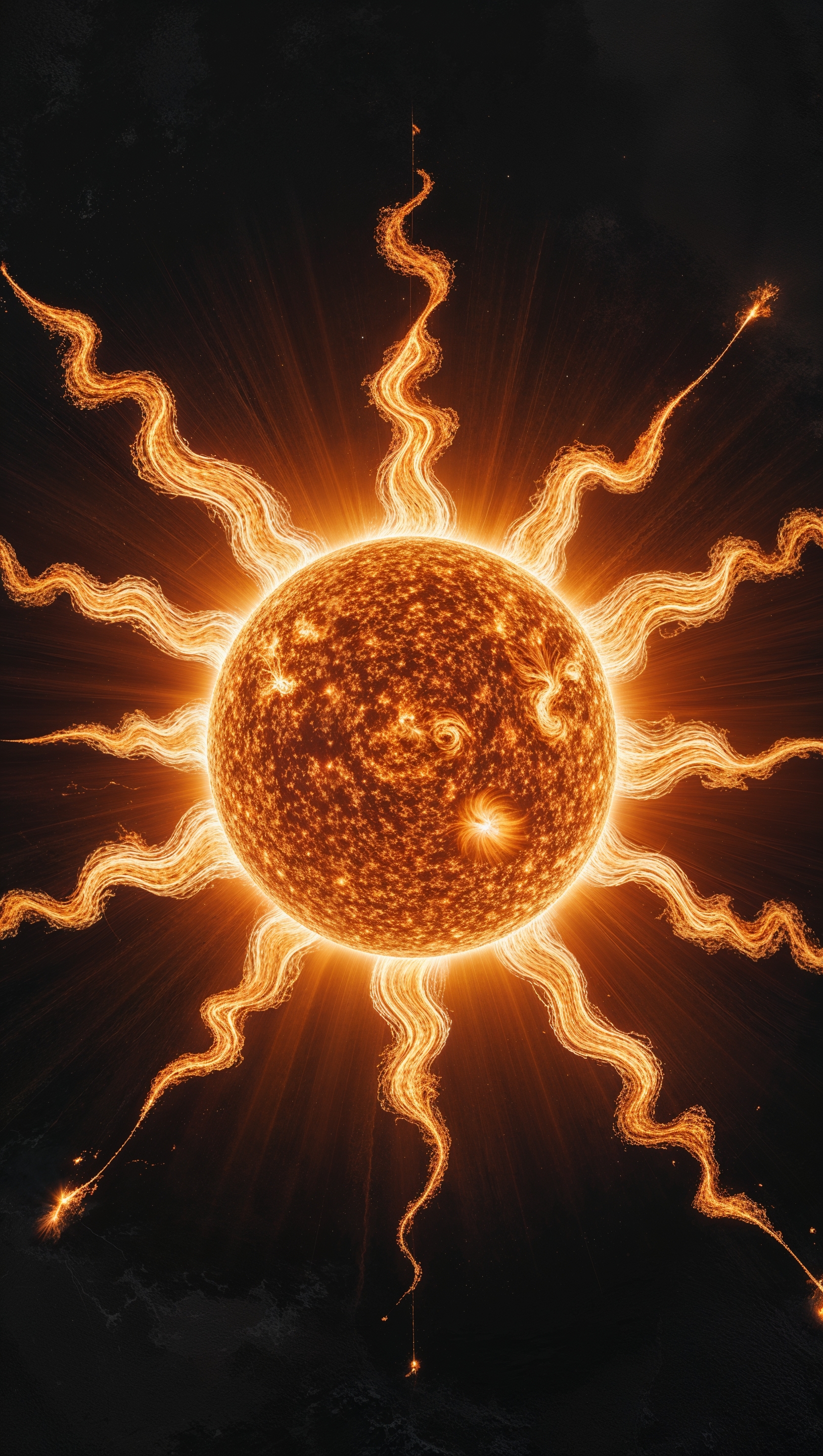 1664x2944 Sun bursting with solar flares, dramatic and scientific look, 4K iPhone wallpaper