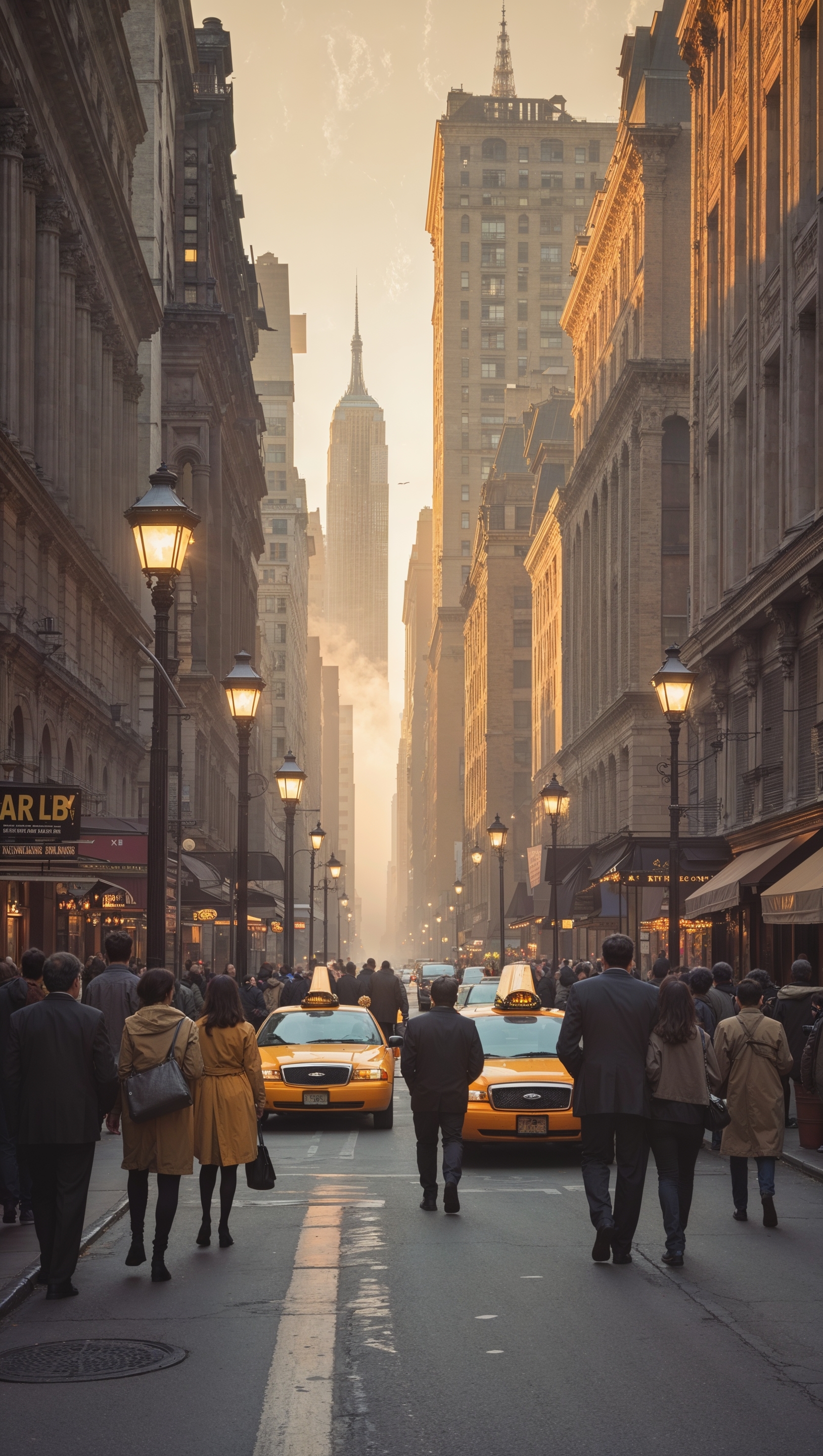 1664x2944 Vintage-style New York City street scene, soft film grain effect