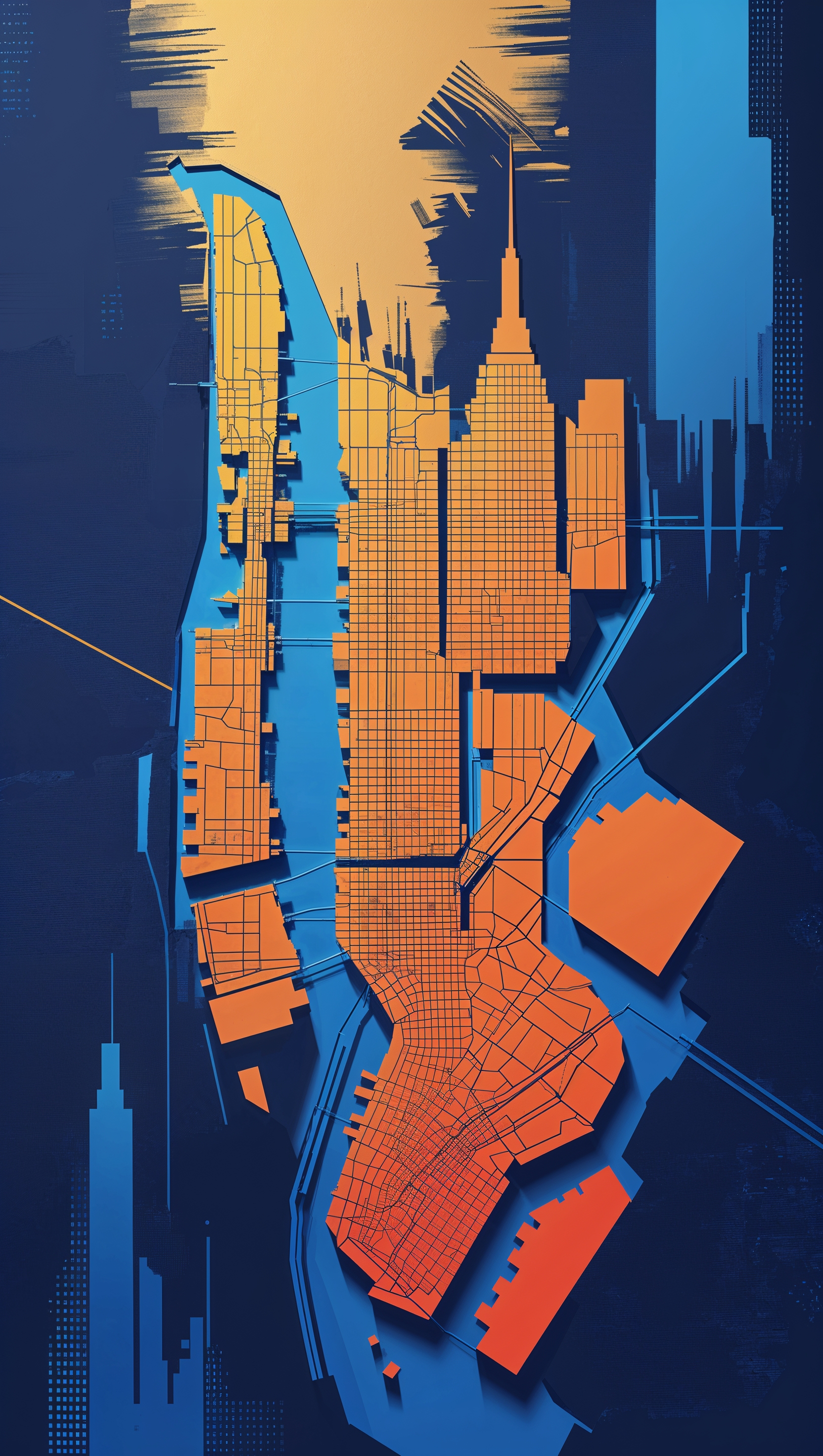 1664x2944 Modern art interpretation of New York for trendy wallpaper
