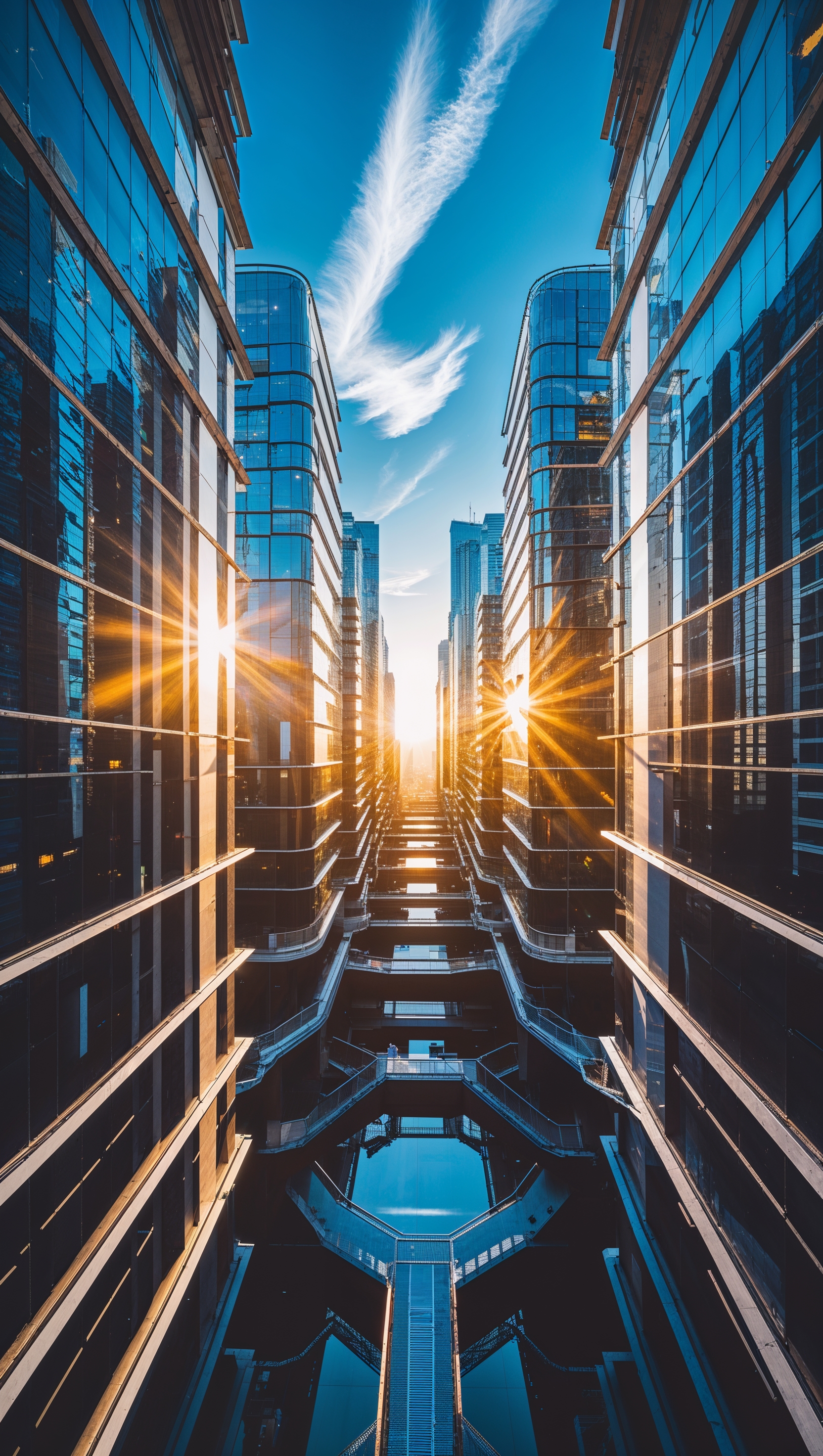 1664x2944 Sunlight between skyscrapers, dramatic light and shadow