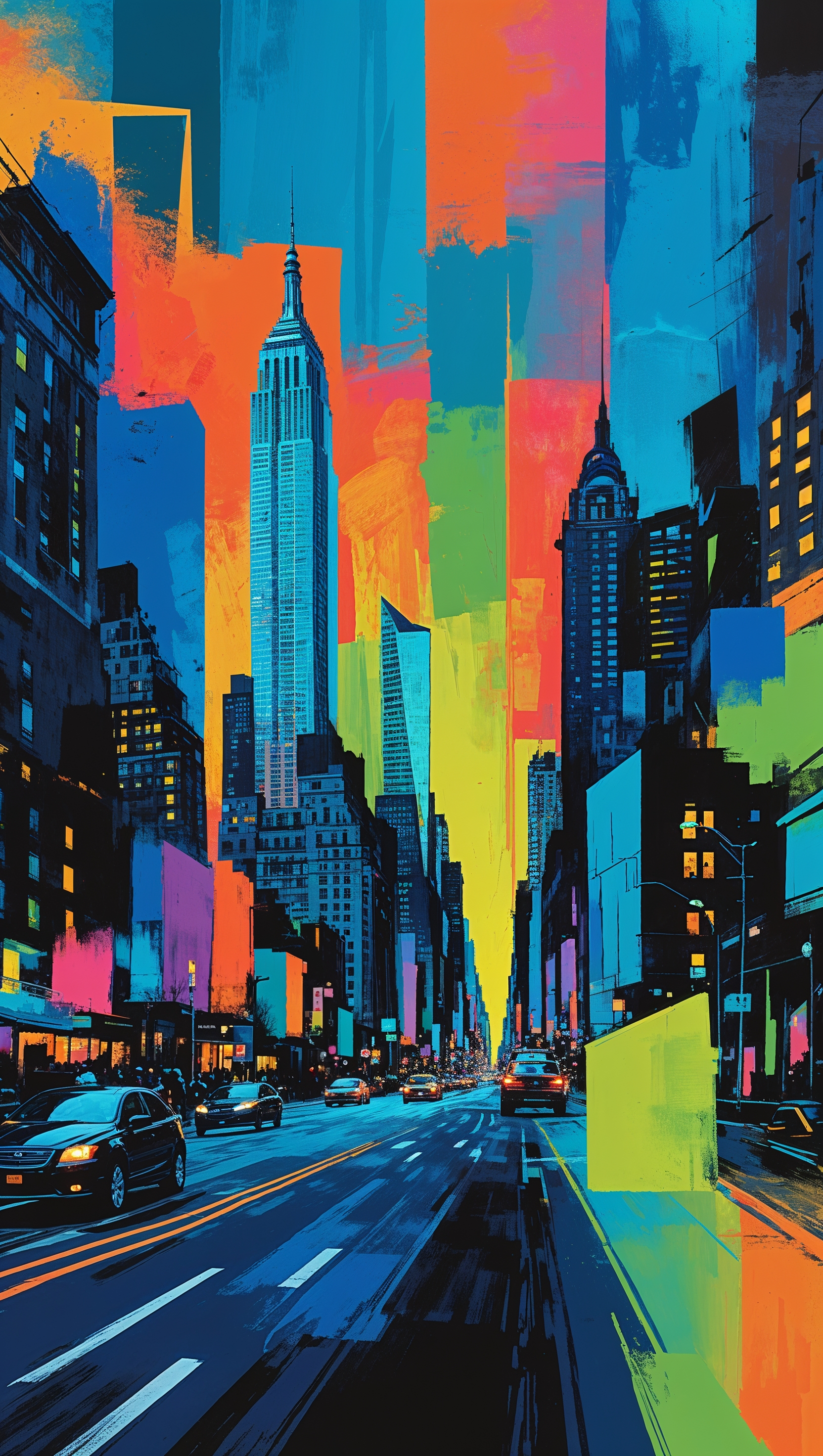 1664x2944 Pop art style NYC scene with bright colors and comic effects