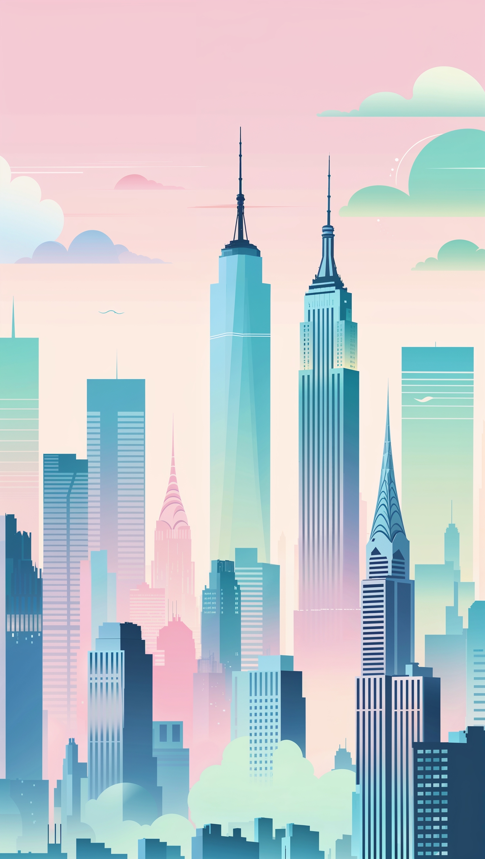 1664x2944 Flat vector illustration of NYC skyline with pastel colors