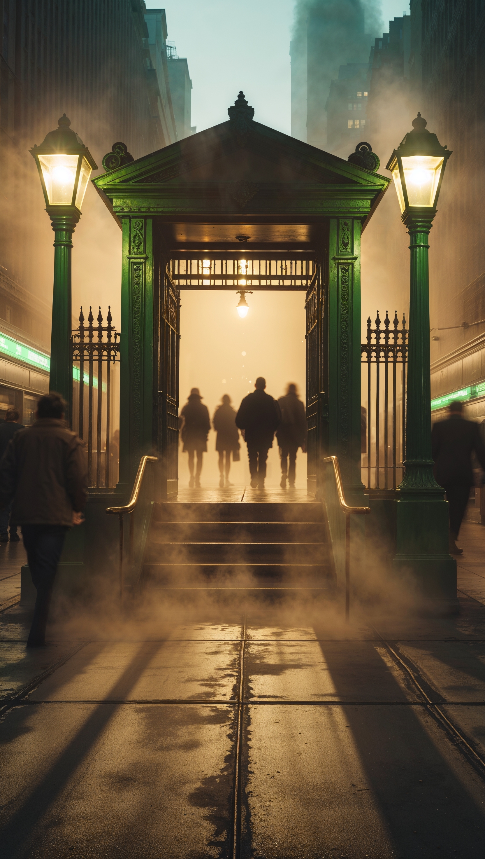 1664x2944 New York subway entrance with dramatic lighting and shadows