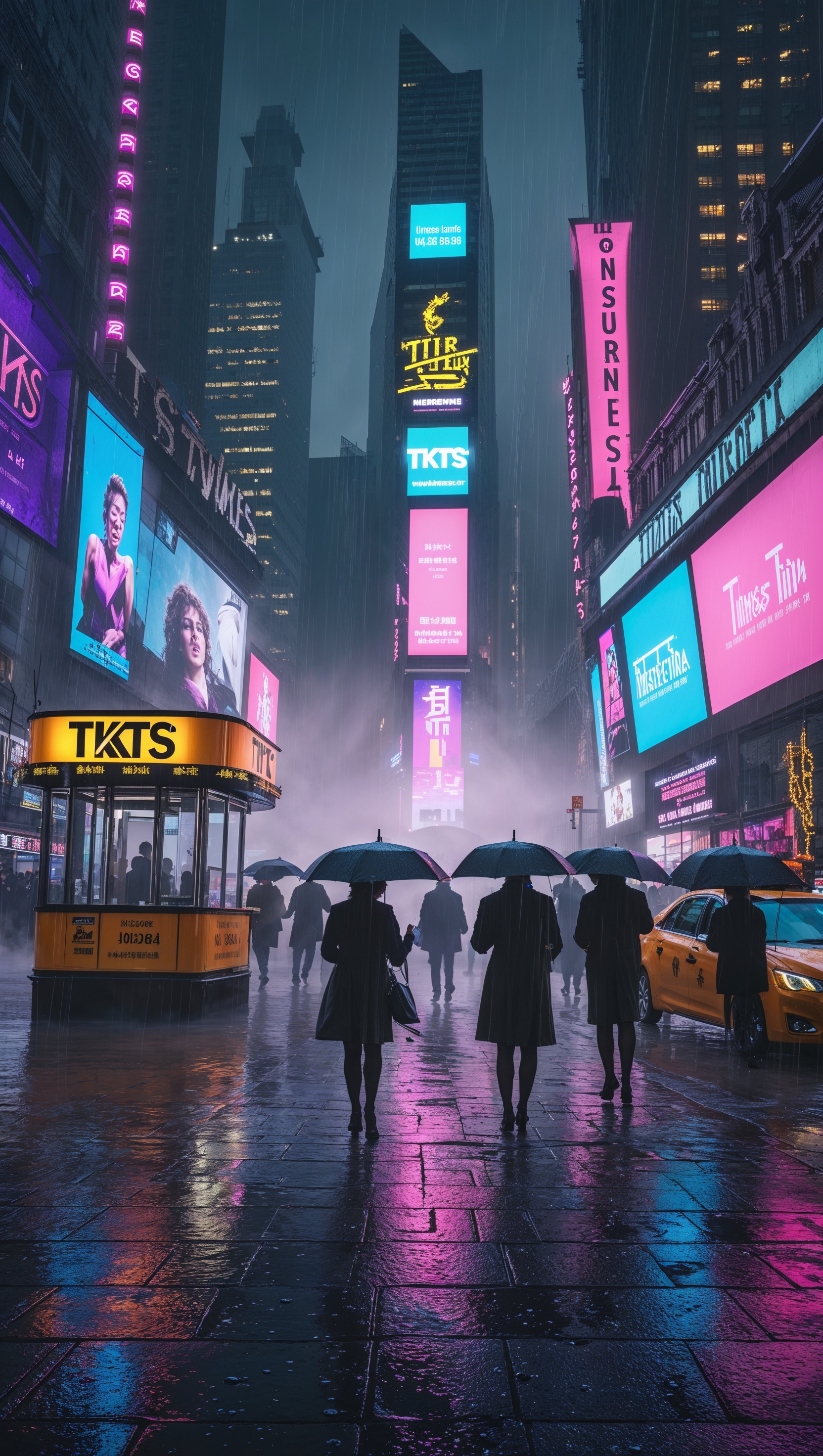 1664x2944 Rainy night in Times Square with neon reflections on wet streets