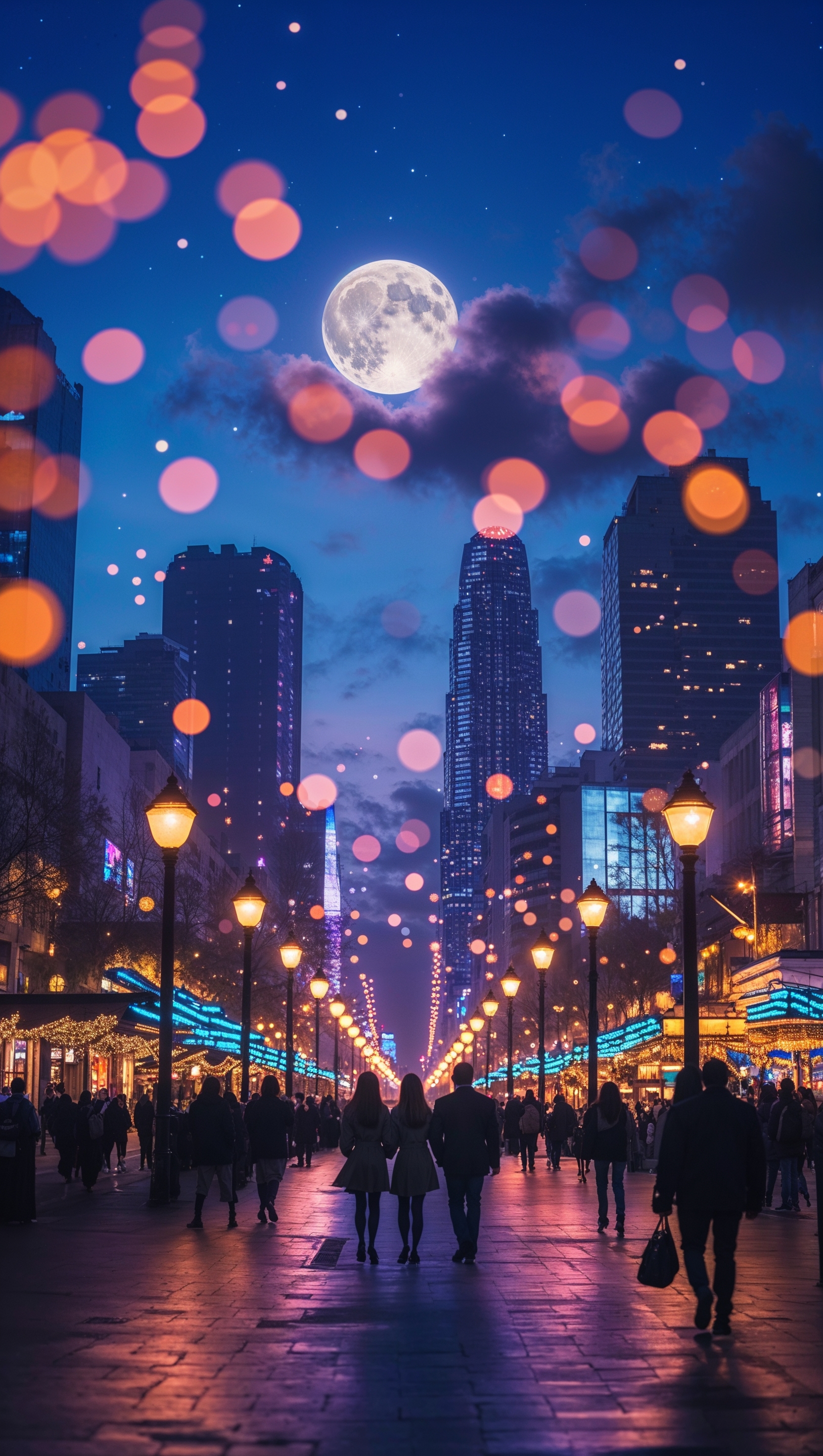 1664x2944 Night cityscape with bokeh lights, romantic ambiance